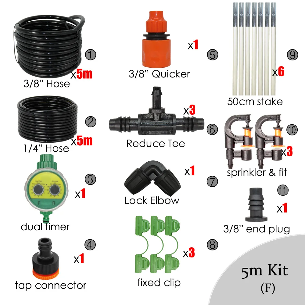-Набор GSKit81MU8117 отлично подходит для полива газонов, орошения сада, орошения открытых участков, орошения двора, орошения теплиц. Вращение на 360 градусов, каждый радиус распыления около 2 метров, полив большой площади покрытия. Форма брызг. Экономит воду, поток воды составляет 160-200 л/ч.