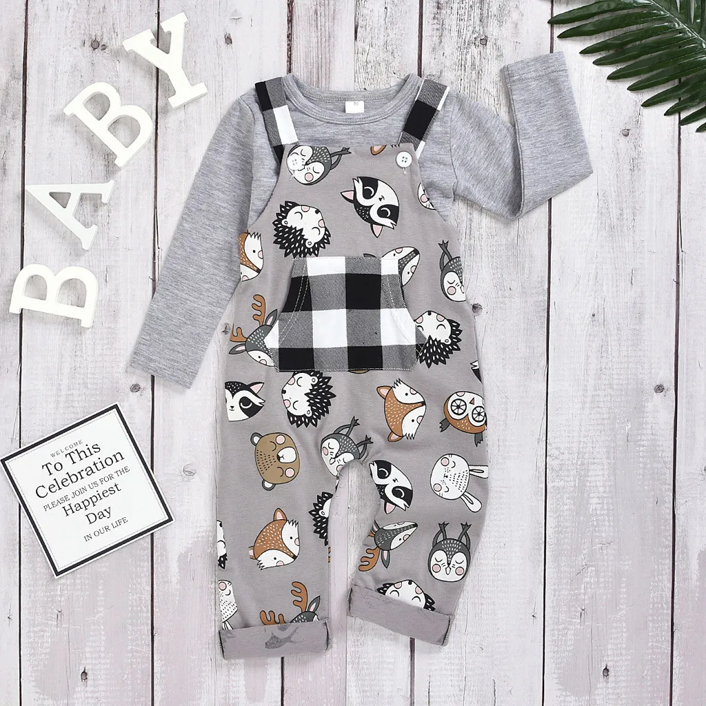 Детский клетчатый комбинезон для маленьких мальчиков и девочек + однотонные футболки, верхняя одежда