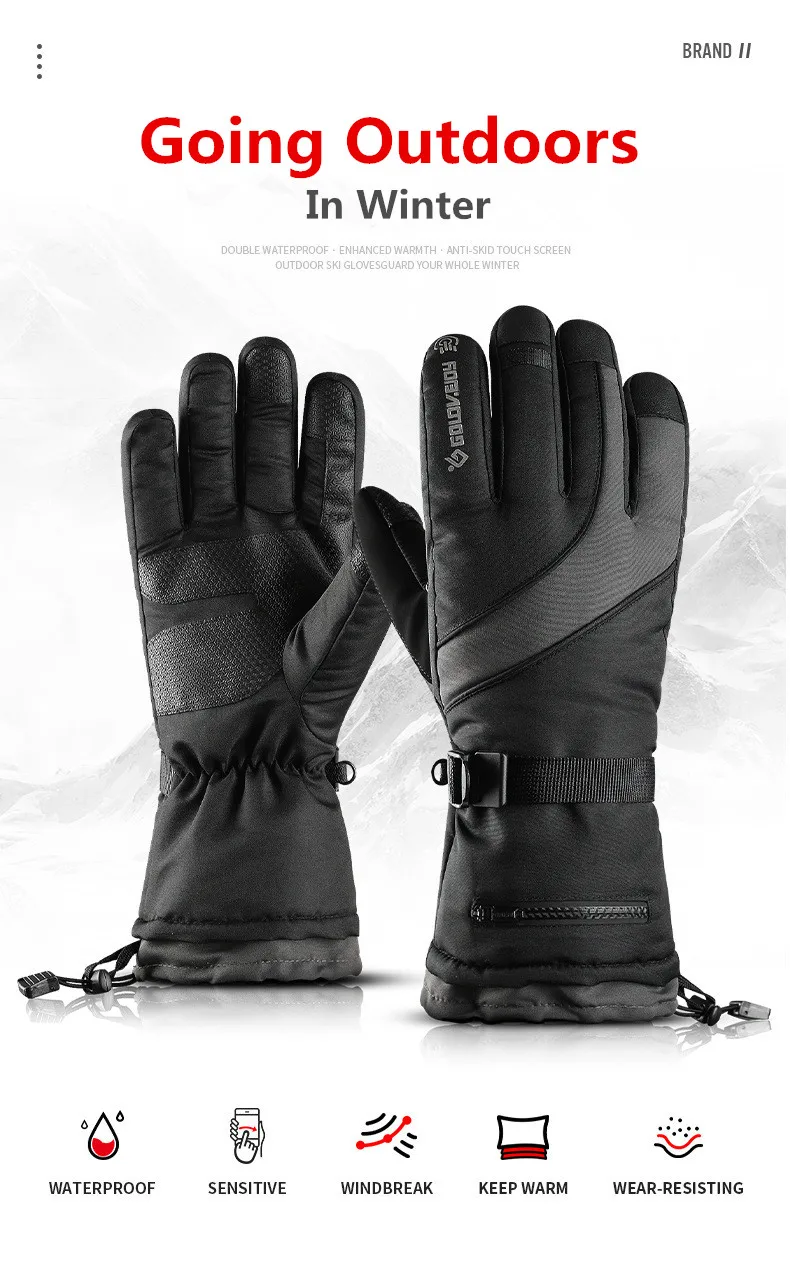 Профессиональные лыжные перчатки флисовые зимние теплые для сноуборда с