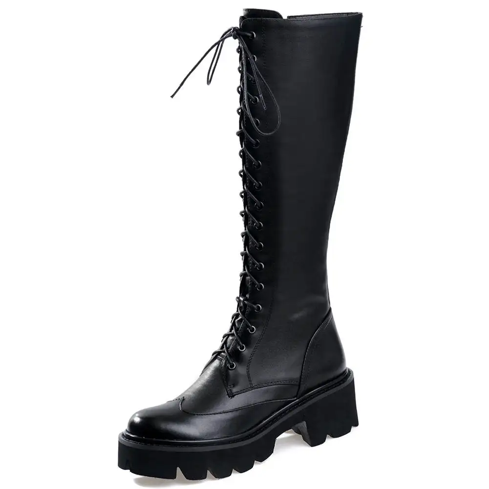 Классические модные новые женские сапоги до колена с круглым носком высокие