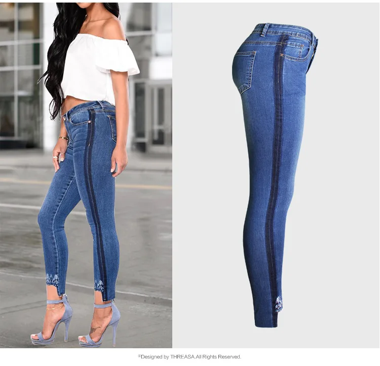Тип: джинсы с вышивкой Цвет: синий Вес: 0,4 кг Ткань: стрейчевый деним облегающий крой, полуподтягивающиеся джинсовые брюки-карандаш
