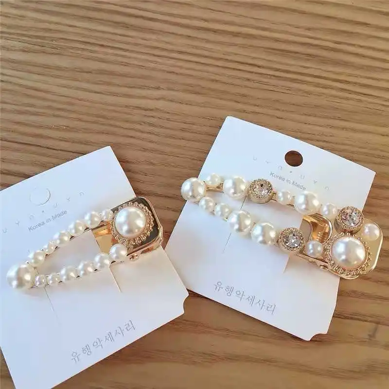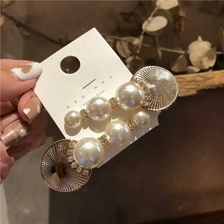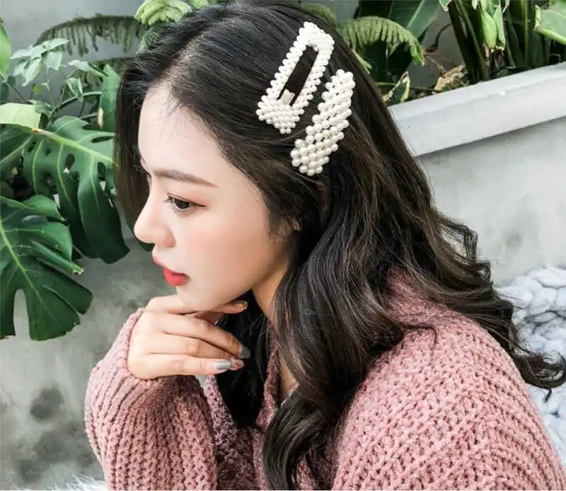 Корейские заколки с искусственным жемчугом, расшитые бисером геометрические женские заколки для волос, аксессуары для волос, ювелирные украшения для девочек, модные заколки для волос