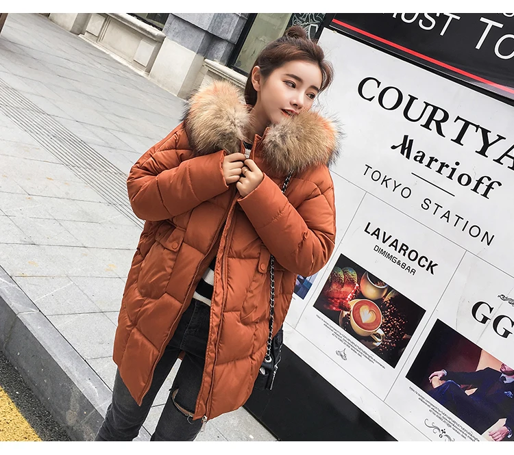 Модная зимняя куртка для женщин большой меховой пояс с капюшоном толстый пуховик