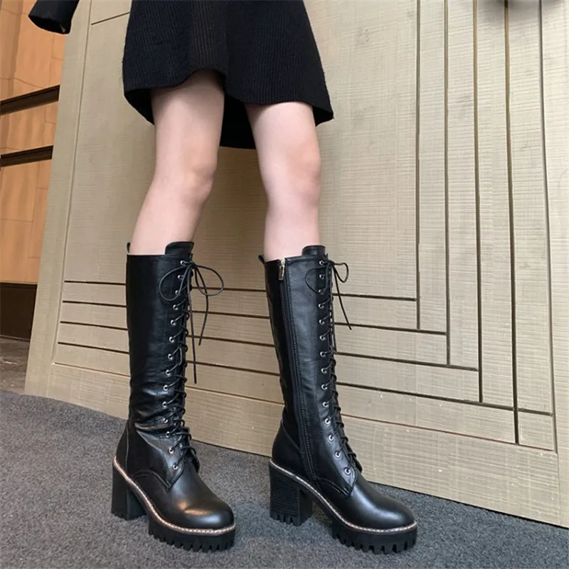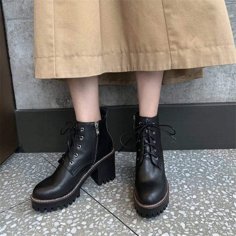 Женские черные носки ботинки весна осень 2019 эластичные на толстом высоком