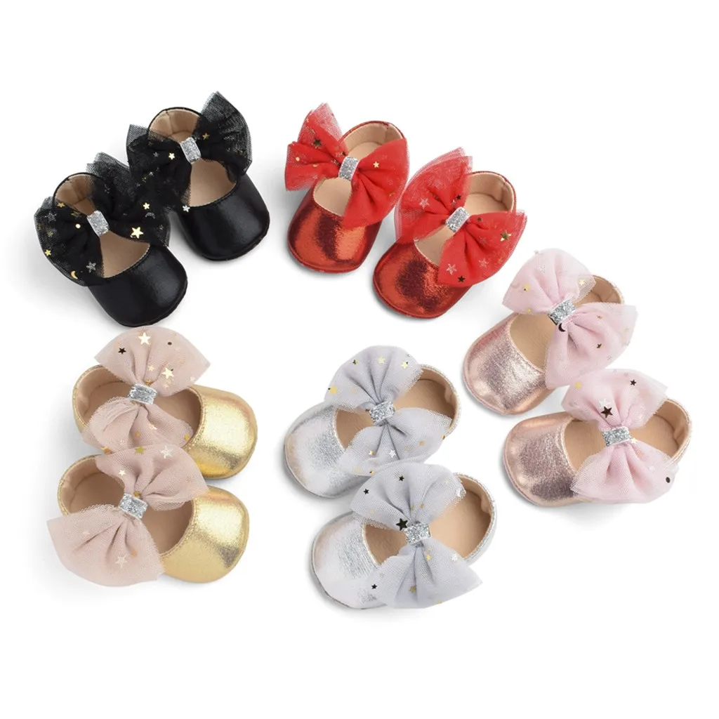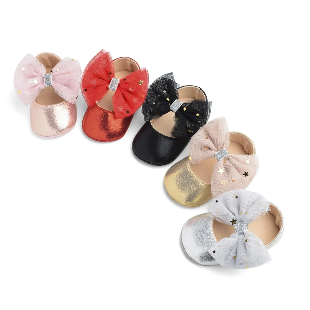 Повседневная обувь с блестками и милым бантом для маленьких мальчиков и девочек