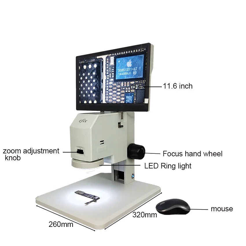 Efix7-45X HDMI Интегрированный Промышленный цифровой микроскоп 11,6 дюймов 1080P дисплей для лаборатории, ювелирные изделия, медицина паяльник мобильный телефон