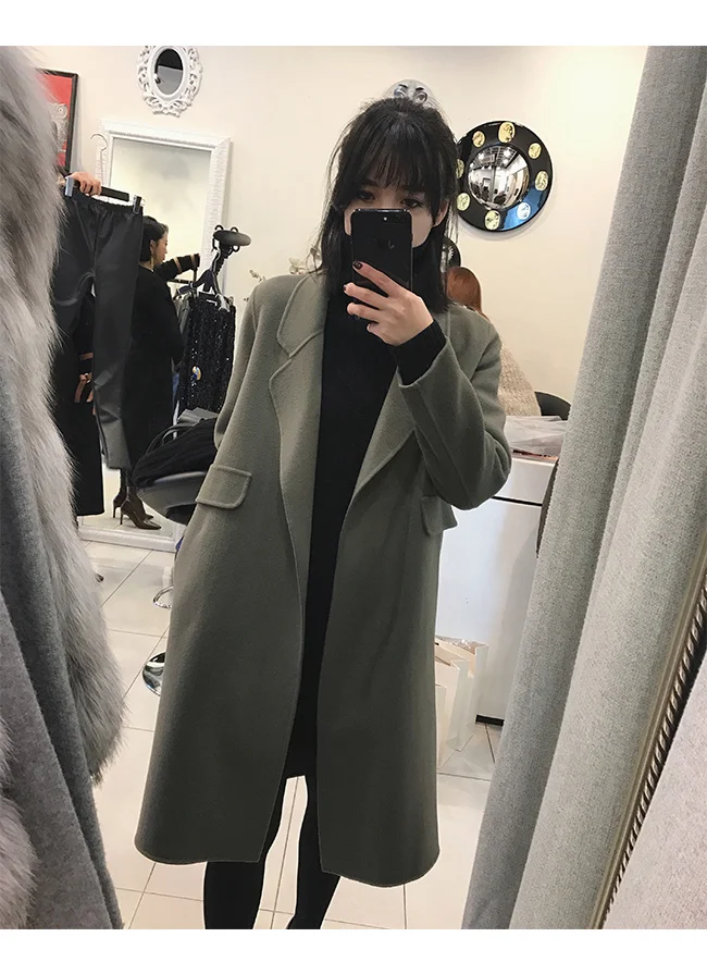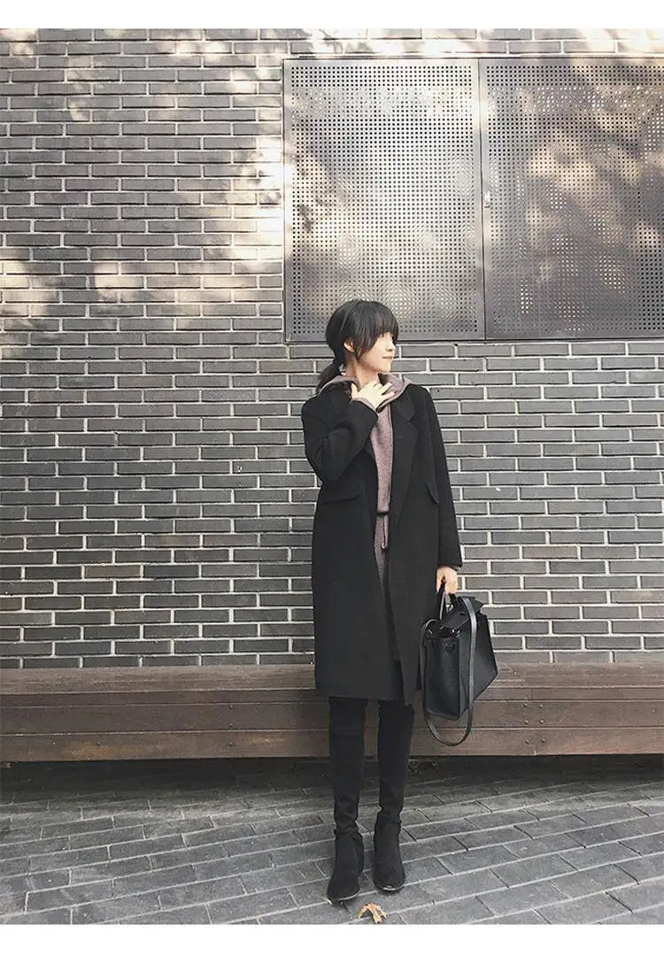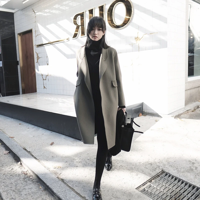 Женский двубортный Тренч с поясом повседневное шерстяное платье модная зимняя