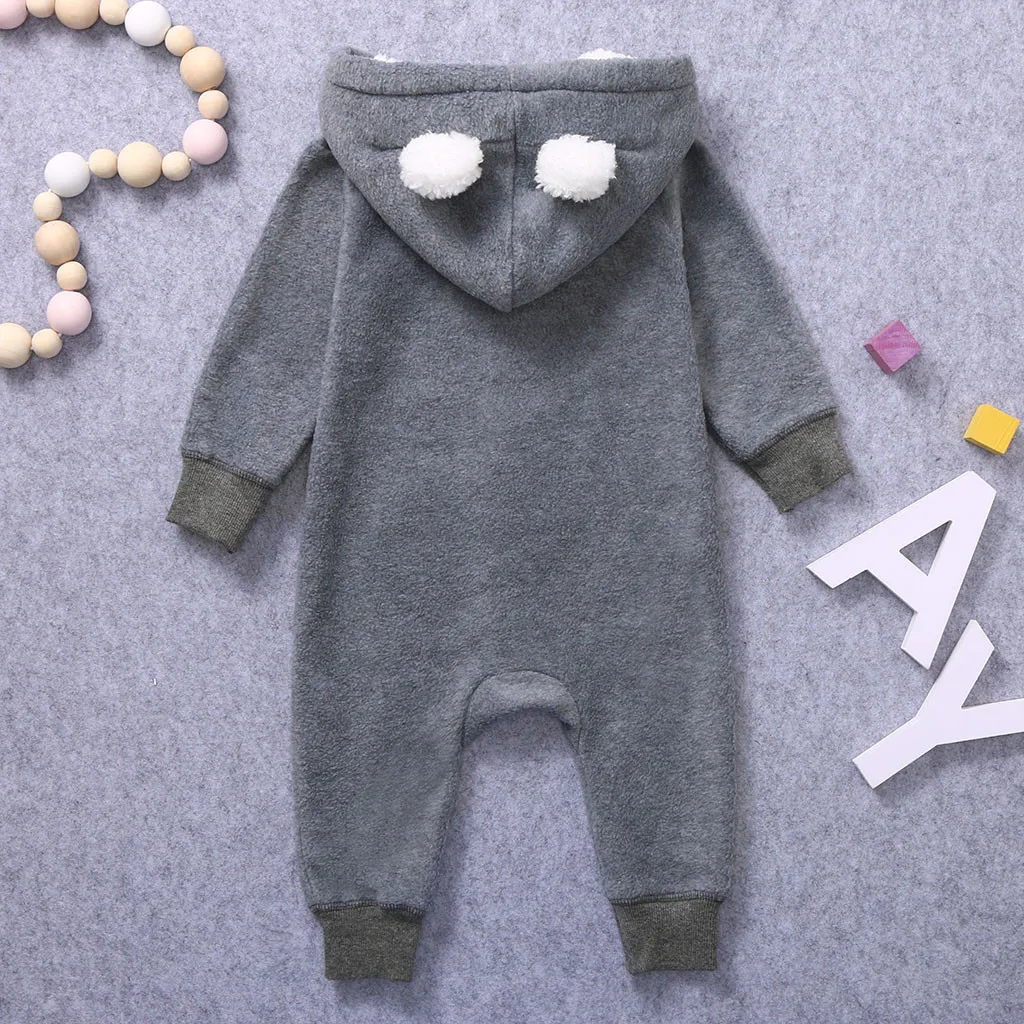 Зимний флисовый комбинезон для новорожденных мальчиков; комбинезон с капюшоном и ушками; теплое пальто; верхняя одежда