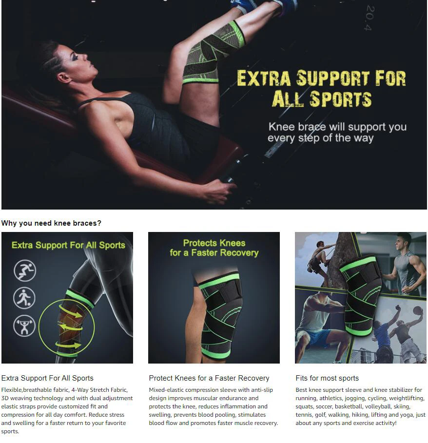 4.Подходит для любых видов спорта:Наш коленный бандаж обеспечивает сдавливание с умеренной поддержкой коленей. Лучший поддерживающий рукав и стабилизатор колена для бега, легкой атлетики, бега, велоспорта, тяжелой атлетики, приседаний, футбола, баскетбола, волейбола, катания на лыжах, теннисе, гольф, прогулок, пеших прогулок, поднятие и yoga, только о любых видах спорта и физических упражнений!