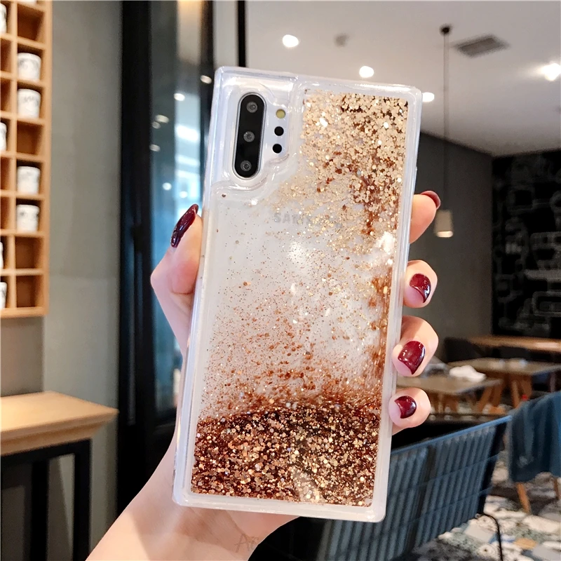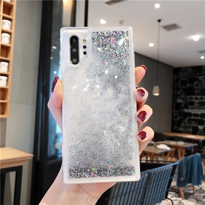 liquid glitter quicksand case on for Samsung Galaxy note 10 plus pro 9 8 5 flowing bling soft silicone back cover capa fundas coque