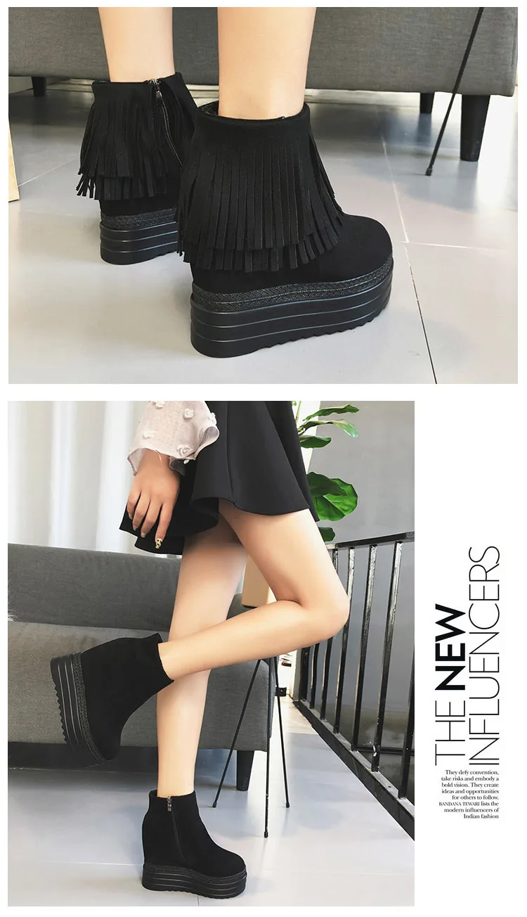 Fringe boots women platform boots high wedges boots for women winter ankle boots thick heel women shoes black zipper botas mujer