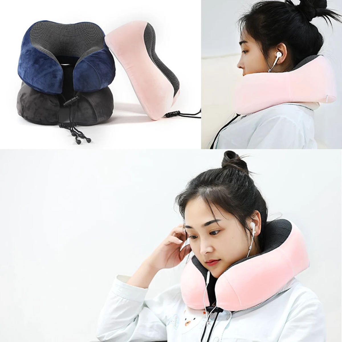 Портативная подушка для шеи U-образной формы с ушками для ушей, складная воздушная подушка из пены для самостоятельного изготовления, дорожная Автомобильная складная подушка для шейки матки