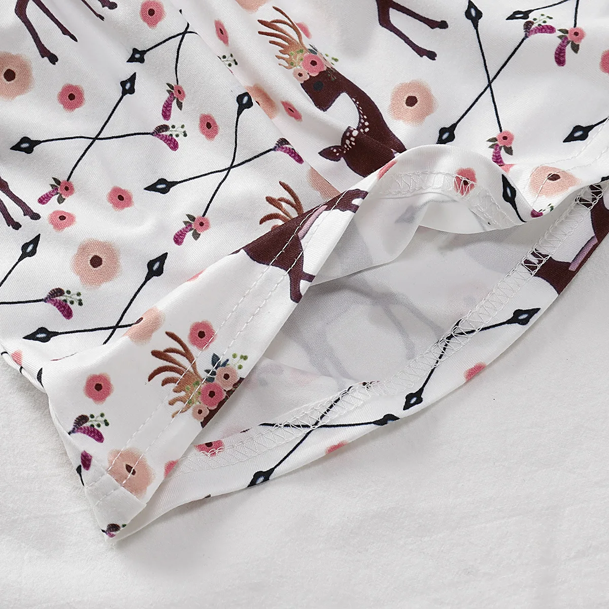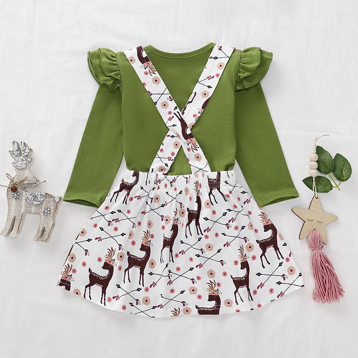 Новый детский костюм с длинными рукавами и принтом оленя для маленьких девочек топ + юбка на подтяжках для От 1 до 6 лет, детская одежда для маленьких девочек, 2 предмета