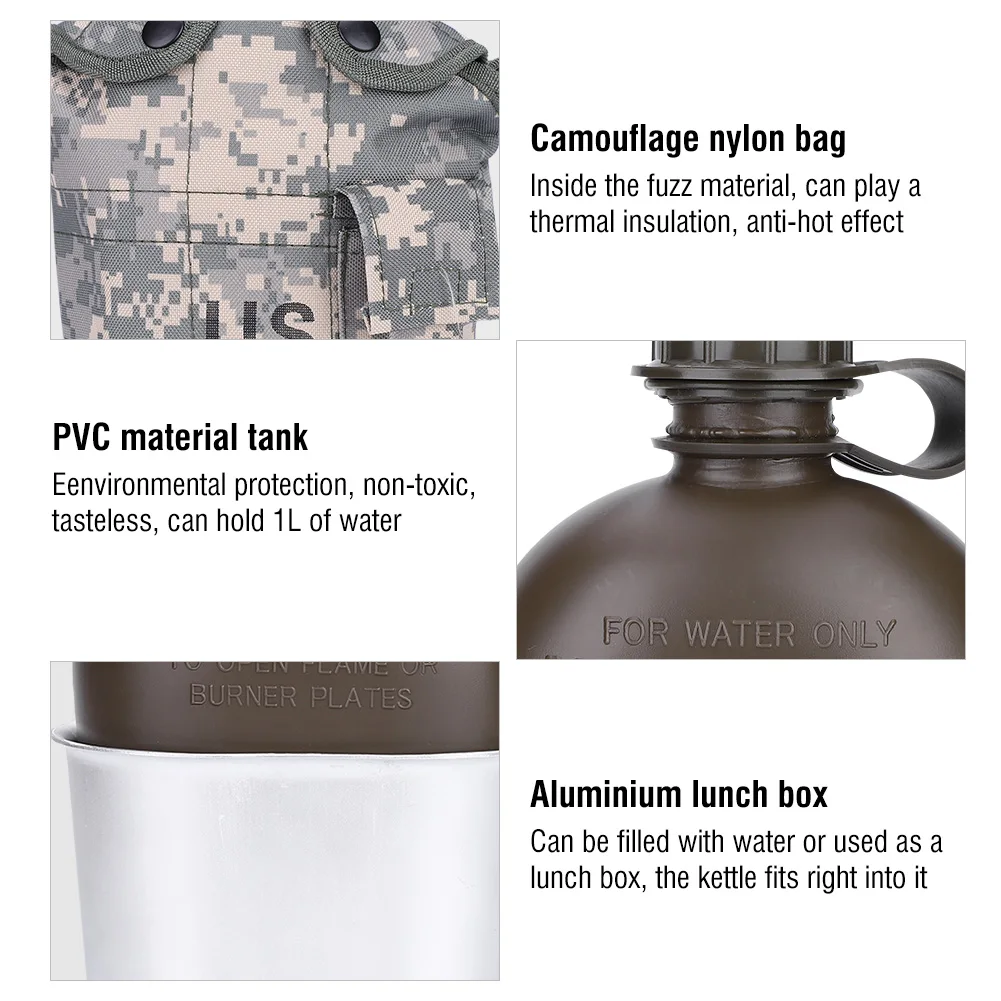 1000 мл камуфляжная ткань армейская зеленая пластиковая Спортивная бутылка для