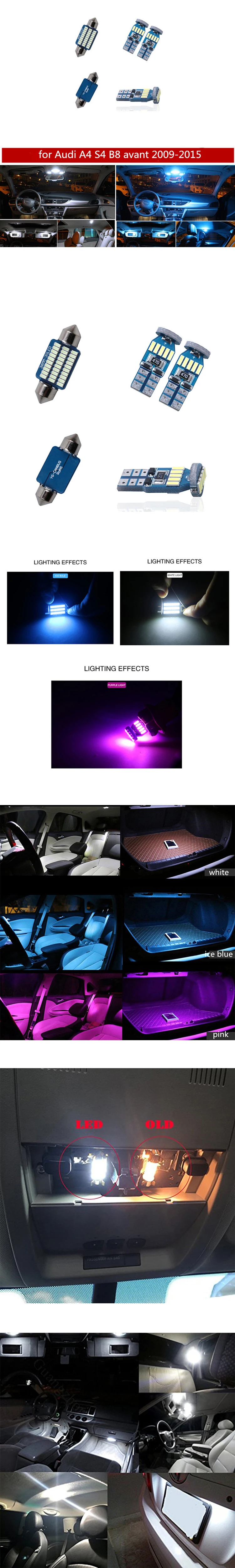 20 шт. белый лампа для салона автомобиля светодиод Шина CAN свет комплект с инструментом для Audi A4 S4 B8 avant 2009-2015 без ошибок белый Ледяной Синий