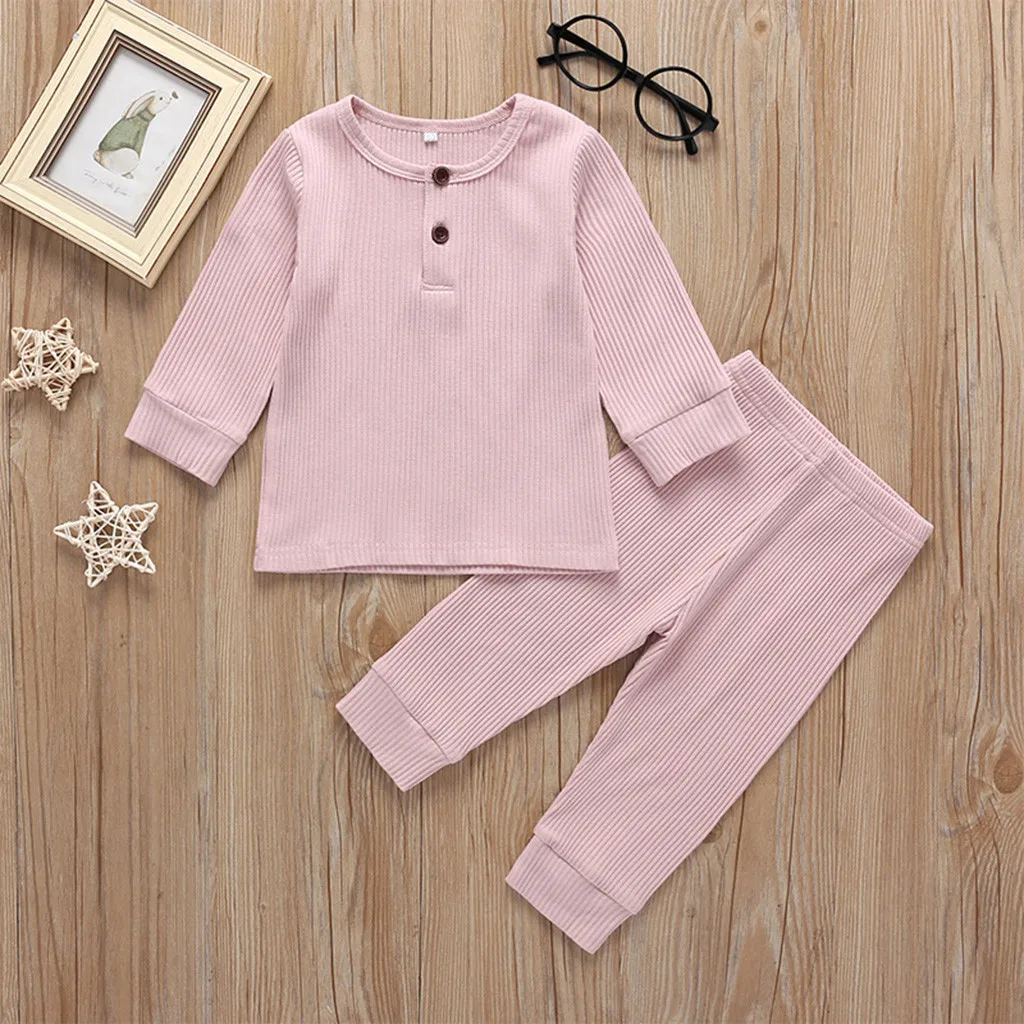 Newborn Baby Boy Girl Clothes Long Sleeve Ribbed Cotton Solid Tops+Pants Infant Pajamas Set Sleepwear Outfits Clothing For Baby