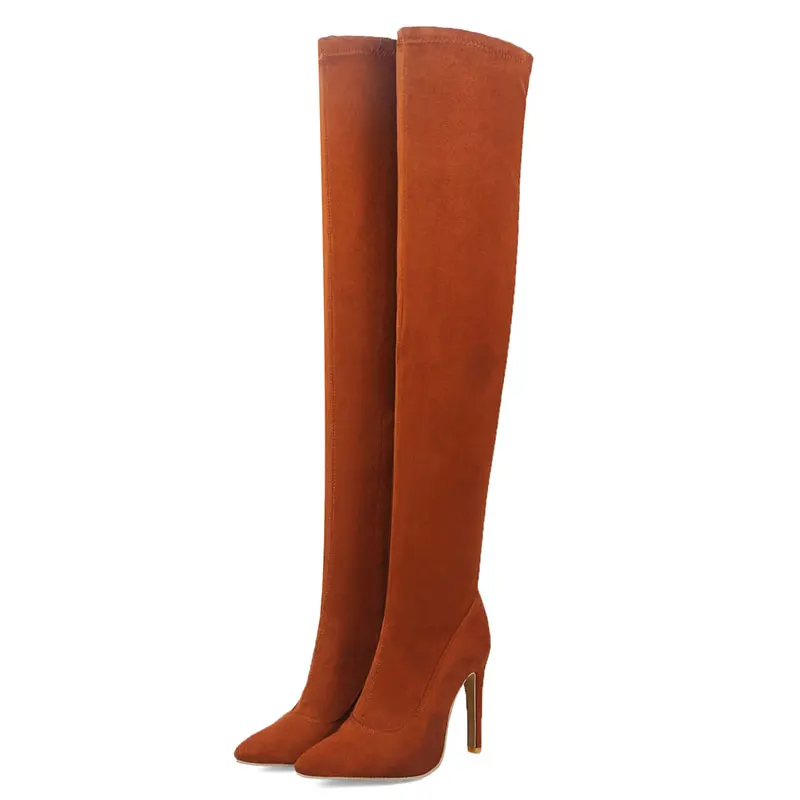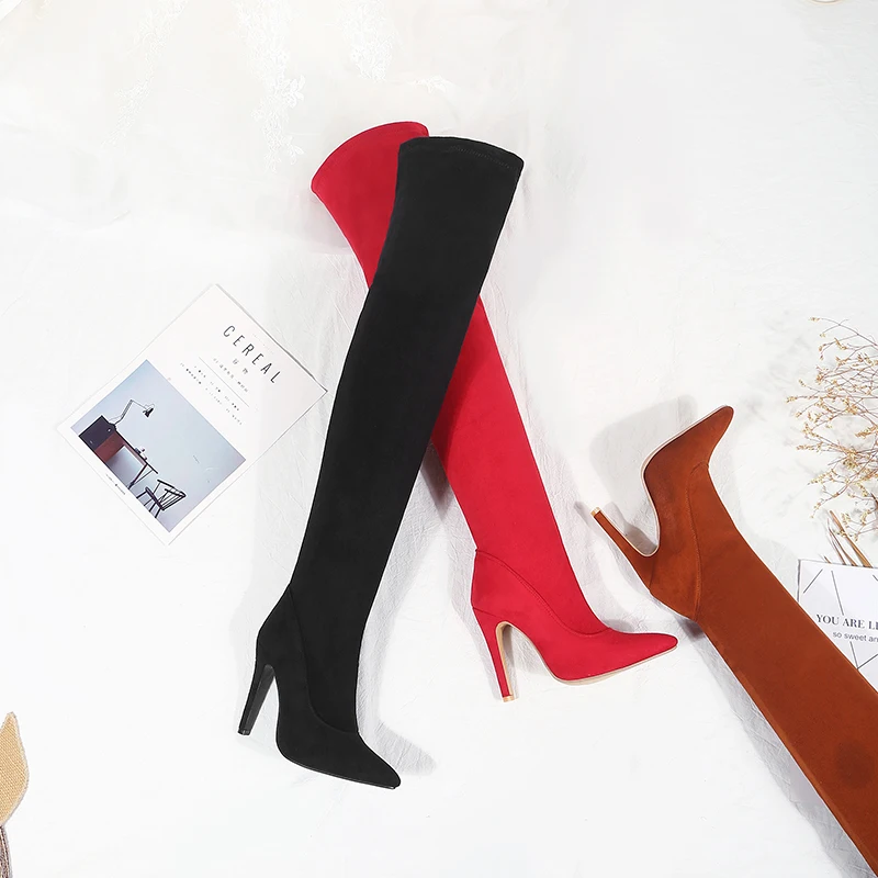 Sgesvier Winter Boots Women Shoes Women Over The Knee Pointed Toe Long Tube Flock Fashion Snow Boots Female All Match Elastic