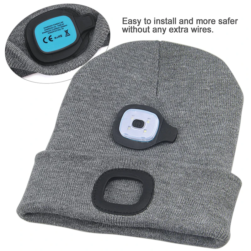 Один размер подходит всем, унисекс, вязаная шапка с 4 встроенных и съемный Перезаряжаемые светодиодный свет, он может светиться расстояние на расстоянии до 30 метров.