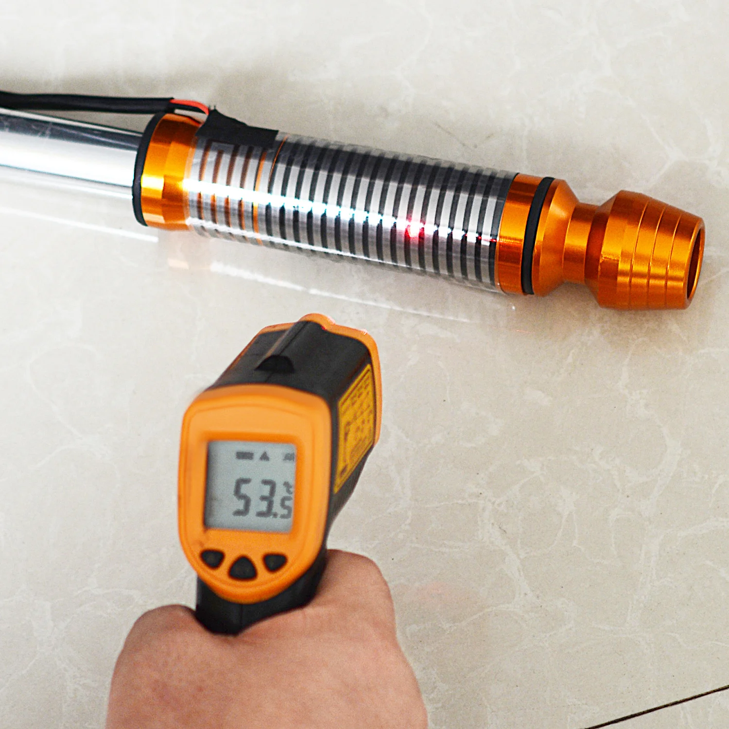 [3]: Наденьте корпус, отрегулируйте положение, используйте пистолет горячего воздуха (также можно использовать зажигалку или фен), чтобы выдуть две складки Наружный корпус продольно симметрично до тех пор, пока сжатие не будет равномерным, а затем равномерно выдуйте другие части, пока слой каждой части трубки не усадится равномерно и равномерно
