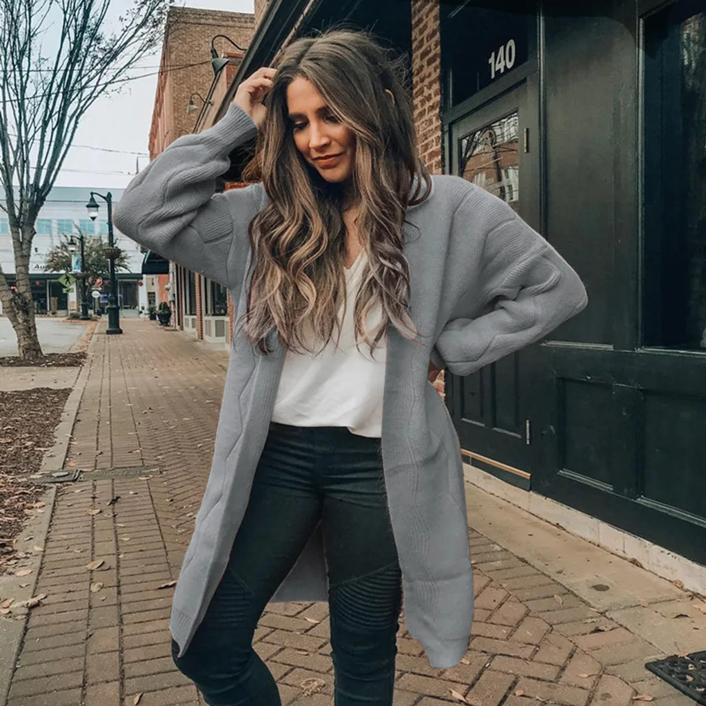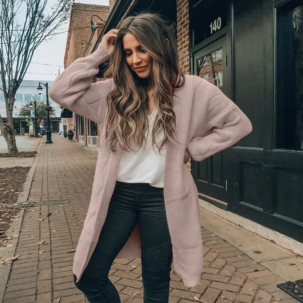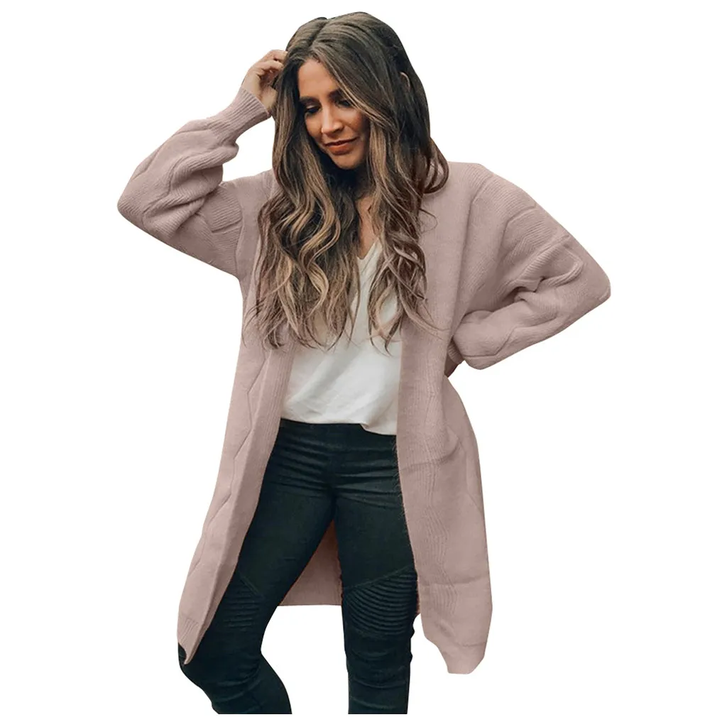 Женский кардиган Boho с открытой передней частью, Свободный вязаный легкий свитер с длинным рукавом
