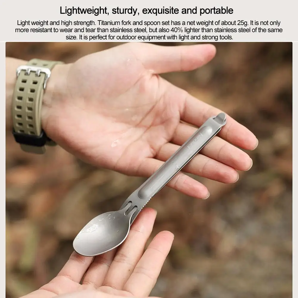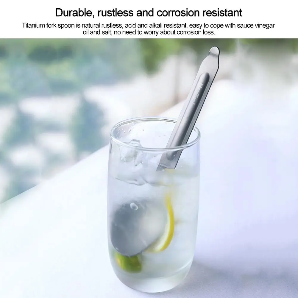 5. Легкий вес: легкий, прочный, изысканный и портативный. Легкий вес и высокая прочность. Титановая вилка и набор ложек имеют вес нетто около 25 г. Он не только более устойчив к износу и разрыву, чем нержавеющая сталь, но и 40% легче, чем нержавеющая сталь одного размера. Идеально подходит для наружного оборудования со светлыми и прочными инструментами.