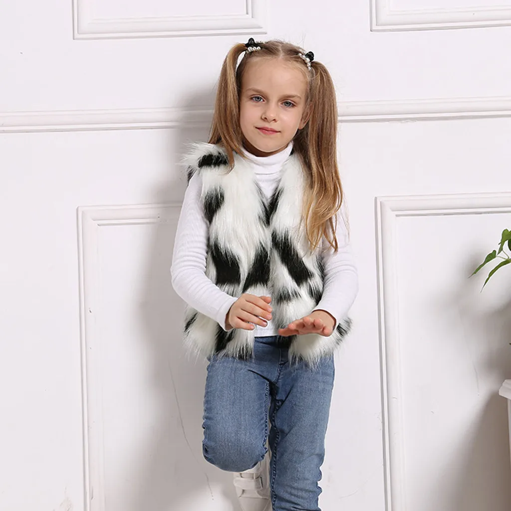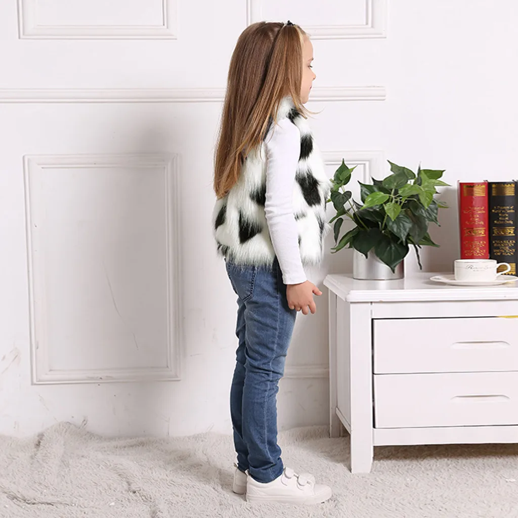 Зимнее теплое плотное пальто из искусственного меха для маленьких девочек верхняя одежда, жилет