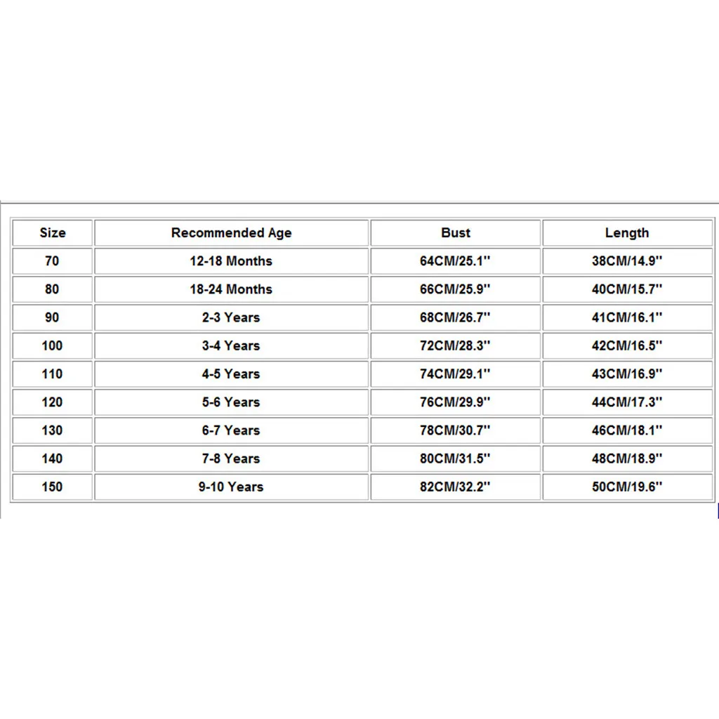 | Размер | Рекомендуемый возраст | Обхват груди | Длина |