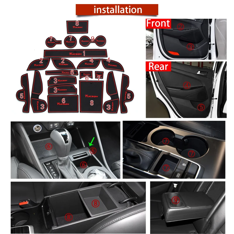 20 шт., автомобильный внутренний коврик для ворот, Нескользящие Коврики для чашки, противоскользящий дверной коврик, внутренний коврик для Hyundai Tucson 2016-2018 Цвет: красный Особенности: 1). 20 шт./компл. 2). Изготовлен из качественного латекса 3). Отличное украшение и защита 4). Простота установки