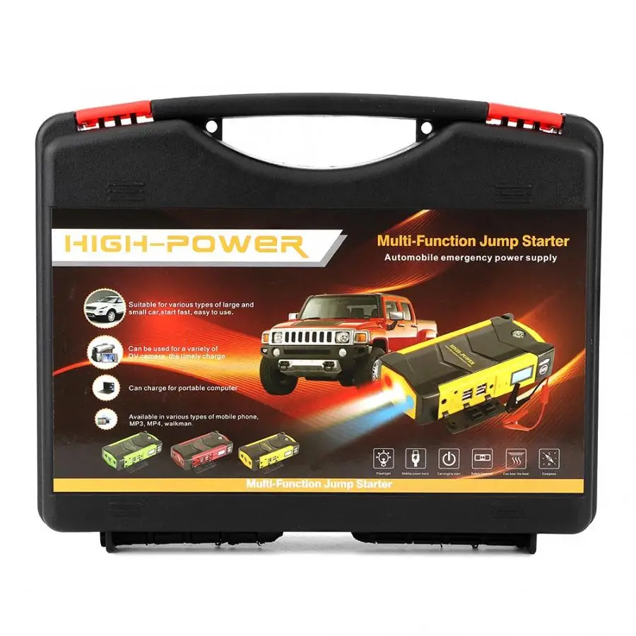 12V 20000 мАч Многофункциональный цифровой Дисплей Смарт пусковые устройства аварийного Мощность банк Зарядное устройство комплект красный 110V-240V