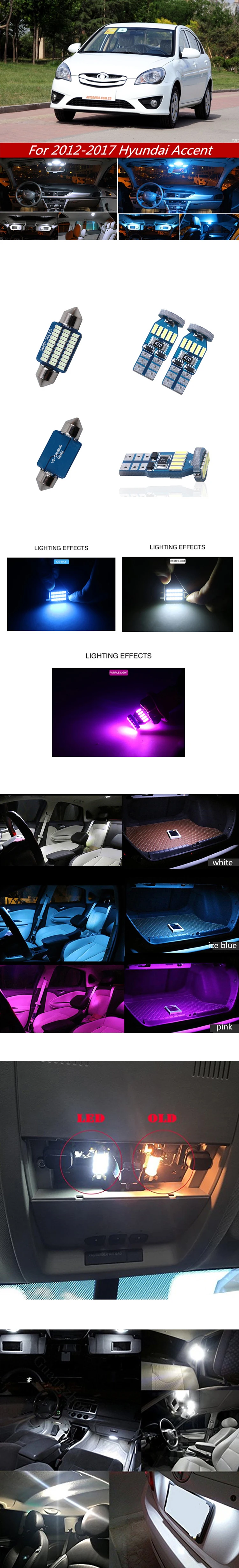 10Pcs Ice Blue White Canbus Led Lamp Car LED Interior Lights Kit For Hyundai Accent 2012-2017 Map Dome Trunk License Plate Light