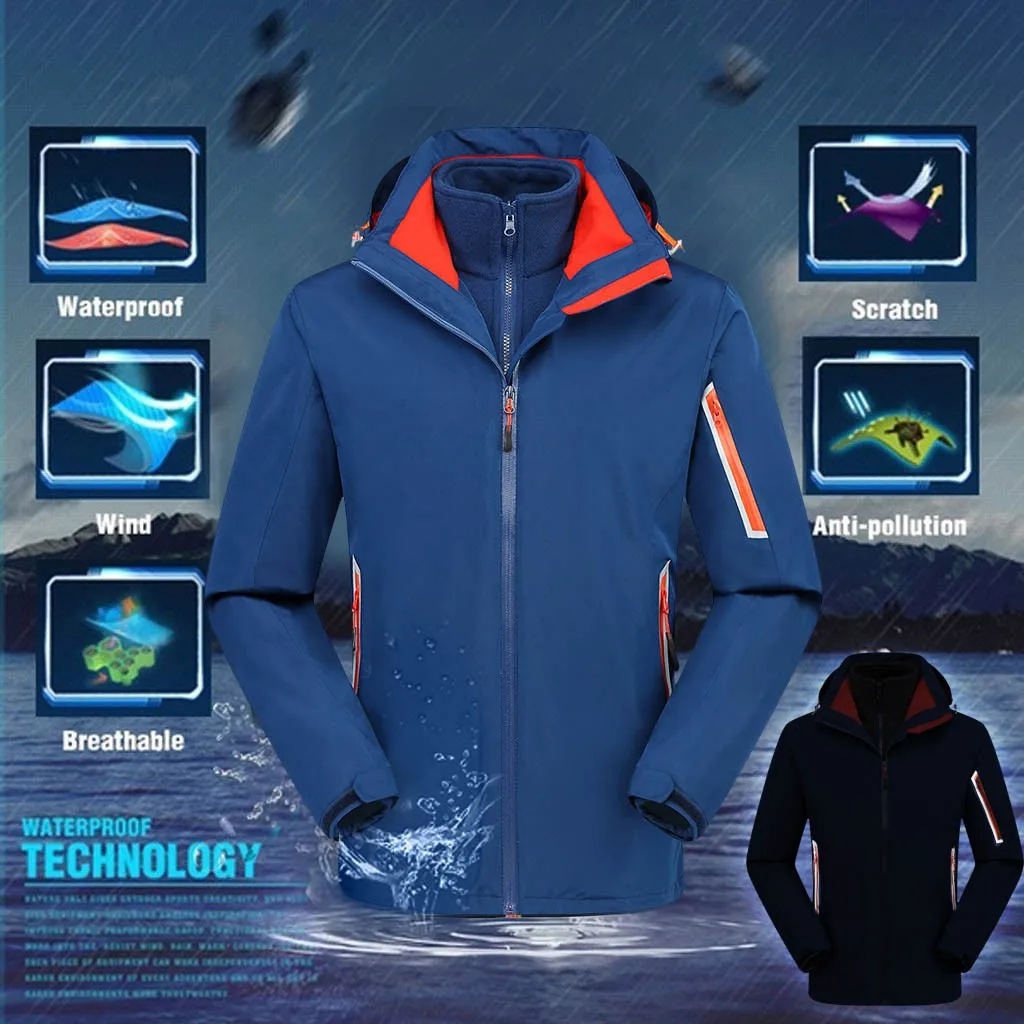 Мужская быстросохнущая куртка для пешего туризма, зимняя ветрозащитная Водонепроницаемая мягкая куртка с капюшоном, куртка на молнии с длинным рукавом для альпинизма