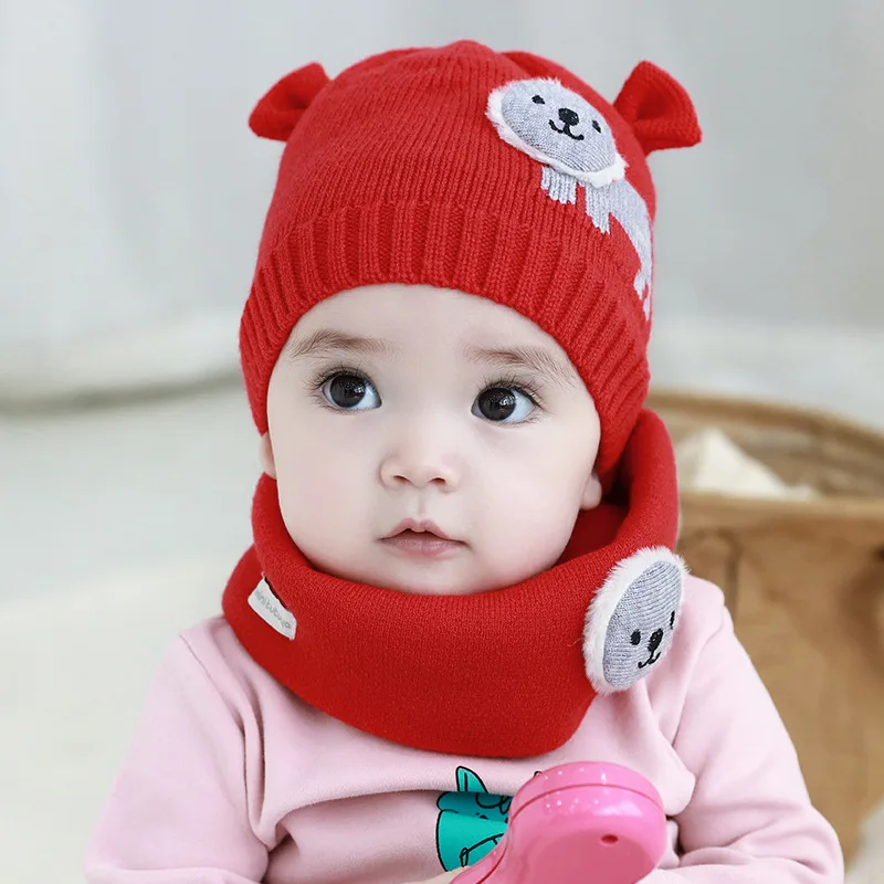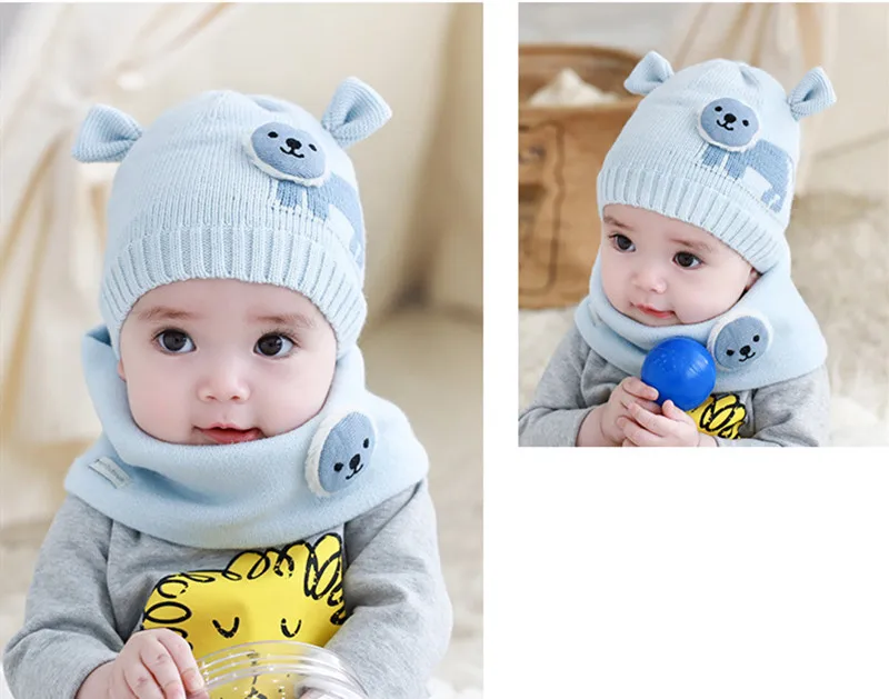 Cute Baby Autumn Winter Home Outdoor Hat Cotton Soft Warm Wool With Bibs Lovely Little Lion Kid Suit to 0-18 Months | Детская одежда и