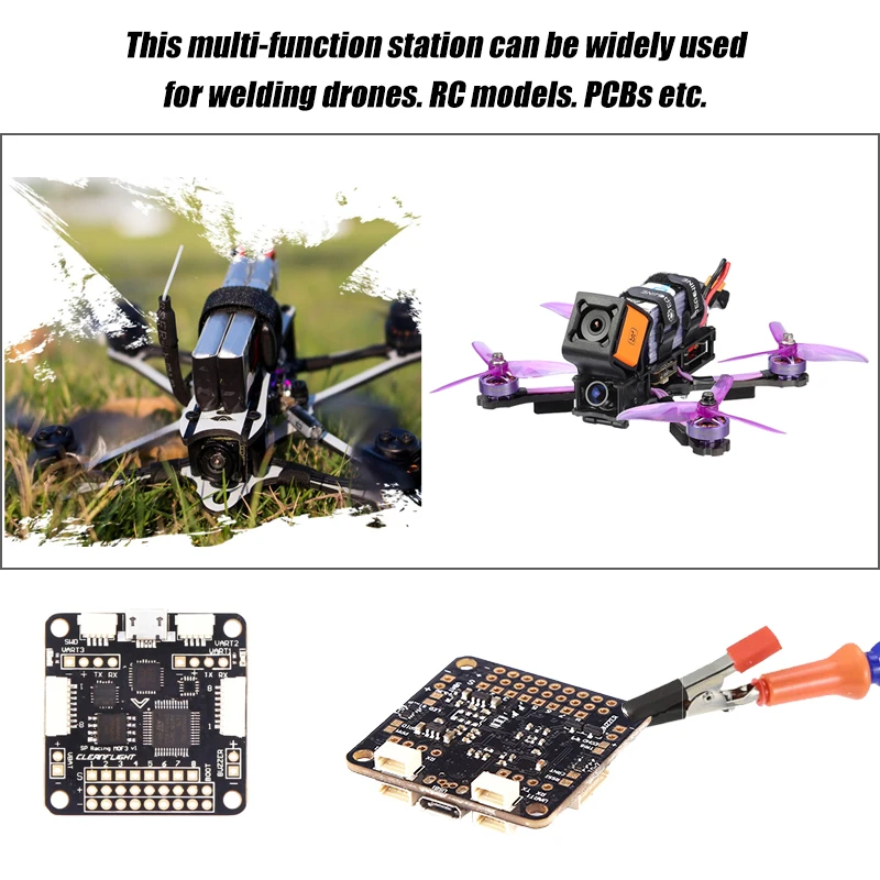 2. Эта многофункциональная станция может широко использоваться для сварки дронов, радиоуправляемых моделей, печатных плат и т. д.Технические характеристики: