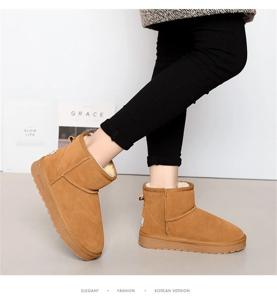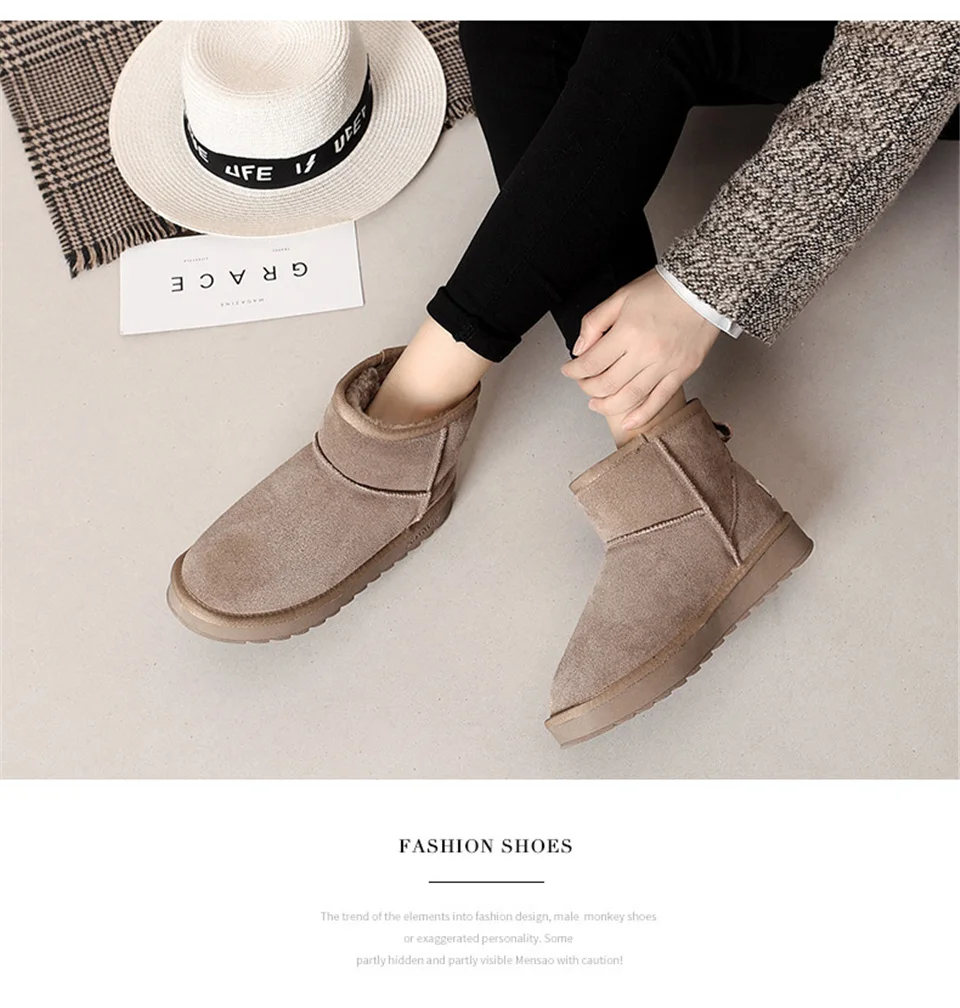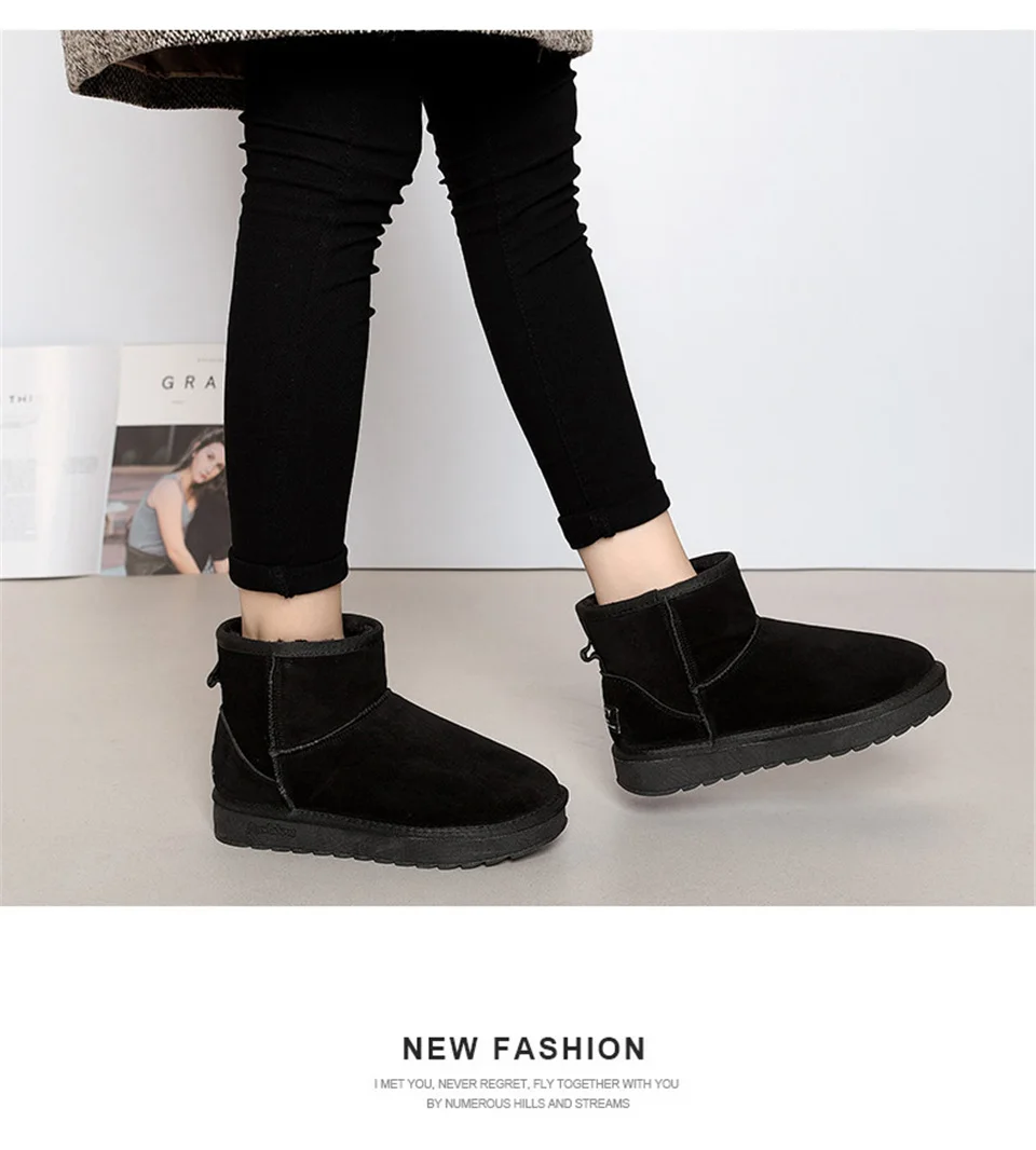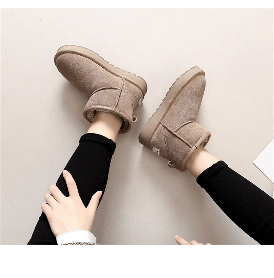 Прямая поставка Теплые женские зимние ботинки на меху Милая зимняя обувь из