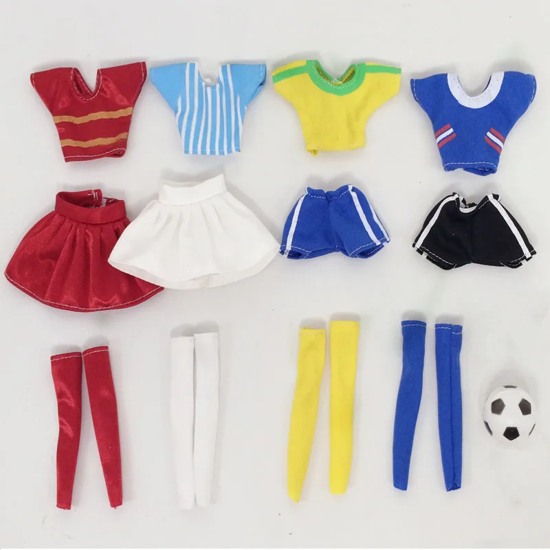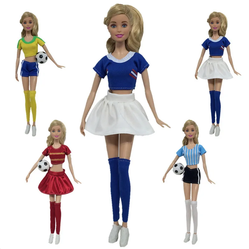 Модная Одежда для кукол Барби, Футбольная чашка, спортивный костюм для любителей футбола, рубашка, юбка, шорты, носки, аксессуары для кукол 1/6
