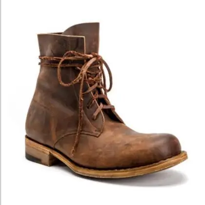 Men ankle boots low heels lace up shoes male man matin shoe men's vintage PU leather booties sapato feminino chaussure M0117