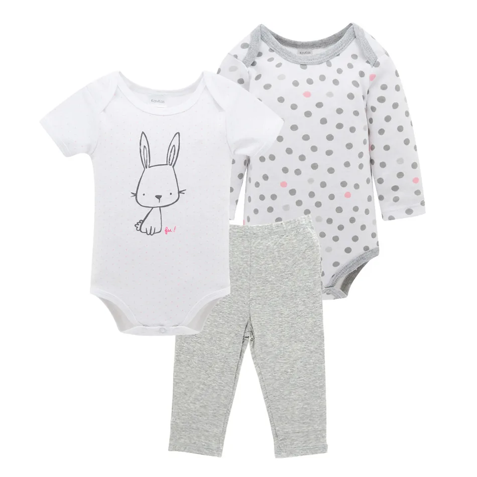 Kavkas 3PCS Newbonrn Baby Clothes Sets for Gifts Beige Infant Boy Rompers Hats Bibs Suit Cartoon Printed Girl Bodysuit Birthday Gift
