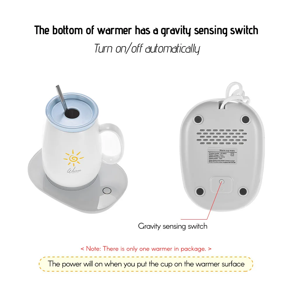 Интеллектуальный индукционный переключатель силы тяжести: в нижней части теплее имеется гравитационный переключатель, Поместите чашку на более теплую поверхность и включите питание. Снимите чашку, она выключит питание и перестанет нагревать чашку водой.