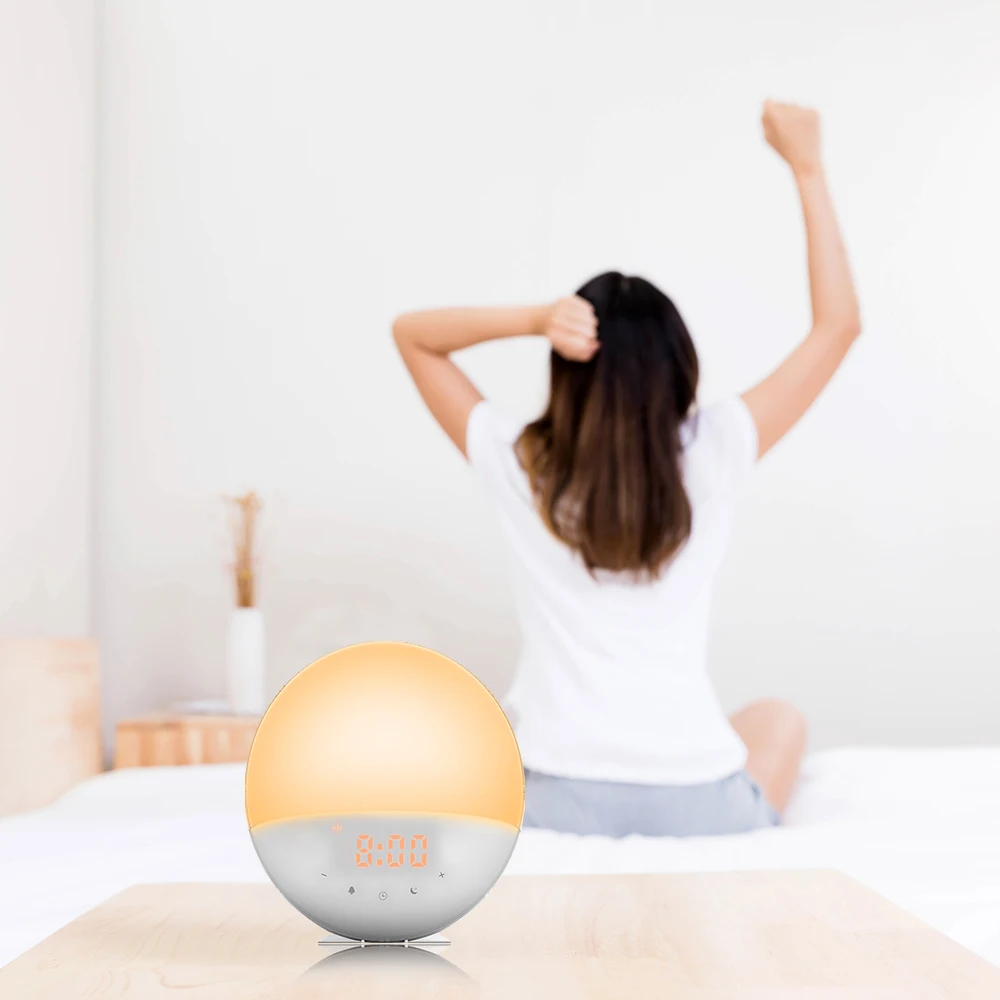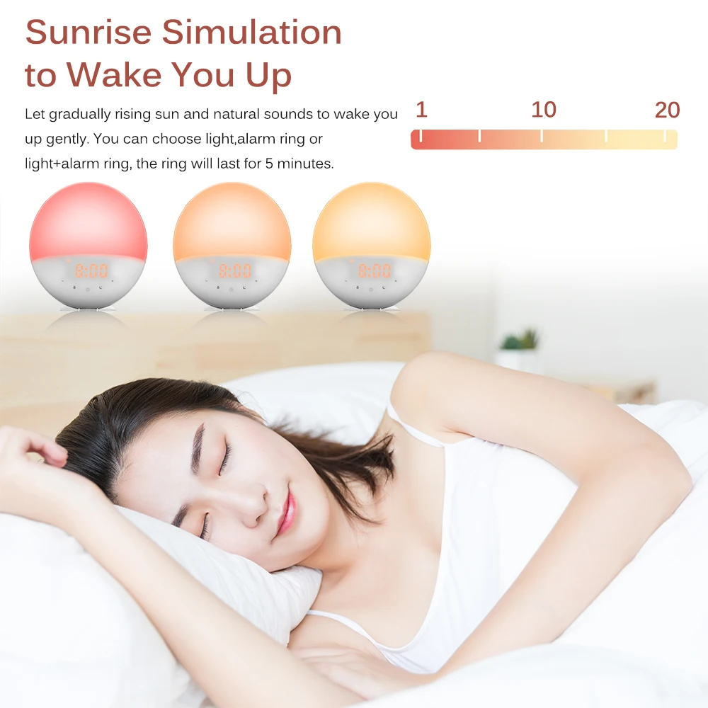 Утреннее моделирование восхода солнца Пробуждение лампы, мягко разбудит вас форму сна с постепенно увеличивается яркость, интимный помощник для сна, нежный и внимательный. Позвольте вам чувствовать себя комфортно, мягко разбудит вас вовремя