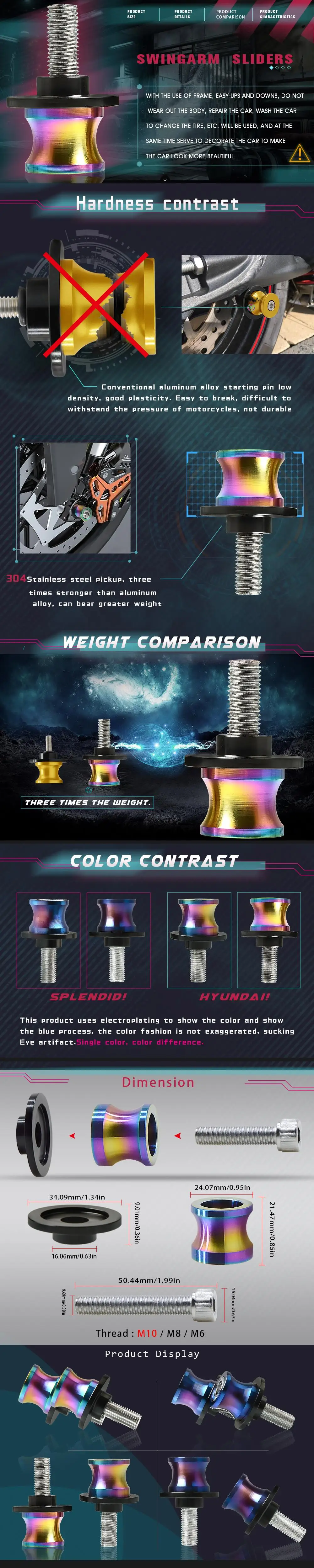 Описание: Независимо от того, хотите ли вы защитить ваш маятник от неизбежного кончика или вам нужно разместить свой велосипед на подставке, эти обработанные ЧПУ катушки/слайдеры/бобины-ваш ответ. Все гонщики действительно знают, что это не то, что Вы перевернули, а то, что когда вы закончите. С помощью этих болтов вы будете чувствовать себя комфортно, зная, что у вас есть защита на месте, чтобы предотвратить нежелательные вмятин и царапин от случайного подъездного пути наконечника или скольжения на скорости. Характеристики: Потому что они гальванизированы и красочные, будут разные углы и разные цвета. Продается как пара (2 шт. катушки) Включает в себяОборудование для крепления (2 шт.-болты) Вес: M6: 144,8 г, M8: 152,2 г, M10: 158 г Приспособление: Спортивные велосипеды с 6 мм 8 мм 10 мм маятниковые монтажные отверстия для катышков/слайдеров/бобины,. Это связано с креплением на катушке Swingarm, не устанавливающим смывку к маятнику. Очень часто случается, но легко фиксируется толстой шайбой. Приспособление для: Для BMW R1200ST R 1200 ST 2005 2006 2007 2008 2009 (Пожалуйста, убедитесь, что эта часть подходит для вашего мотоцикла перед заказом) 1. Легко установить. 2. Болт прямо в поворотный рычаг. 3. Изготовлен из высококачественных слайдеров Delrin. 4. Высококачественные слайдеры с ЧПУ. 5. Включает 2 болта из нержавеющей стали. 6. 2 шт. в комплекте (слева и справа). 7. Ползунки с поворотным рычагом обеспечивают защиту с функциональностью, что позволяет поднимать заднюю часть велосипеда с помощью навесной стойки, оснащенной подходящей вилкой для катушки. 8. Использование ползунков с поворотным рычагом предназначено для ограничения повреждения мотоцикла осенью или в случае аварии. Это не является гарантией отсутствия повреждений.