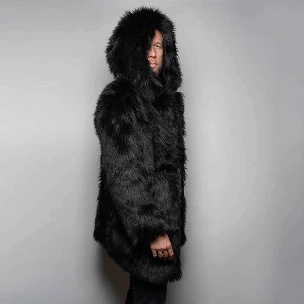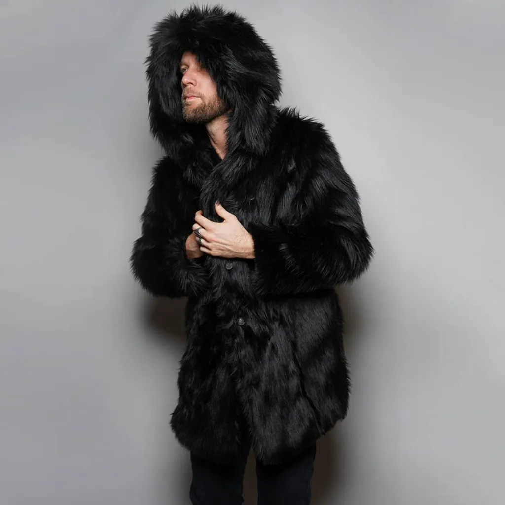 Модная мужская теплая плотная куртка с капюшоном, верхняя одежда из искусственного меха