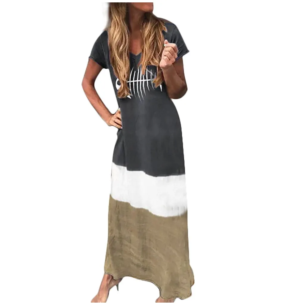 Features:Vintage,Loose,Color Block,Patchwork,O-Neck,Short Sleeve,Maxi Dress,Long Dress,Vintage Style,Summer and Spring dress.