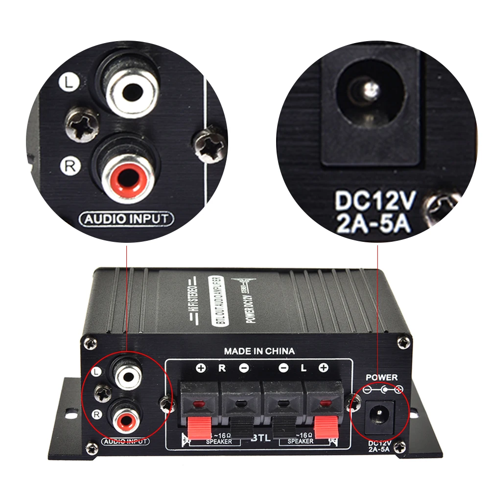 Особенности: Мини Hi-Fi цифровой аудио усилитель мощности. С тройными, басами и регулировкой громкости, очень прост в использовании. Низкий уровень искажений обеспечивает более четкий, сильный и мощный звук. Два выхода основного канала. Технические характеристики: Цвет: черный Входное напряжение: 12 в пост. Тока Номинальная мощность: 20 Вт + 20 Вт Канал: 2 канала Сопротивление нагрузки: 4-16 Ом SNR: >90 дБ Уровень искажений: 0.05% Частота: 10 Гц-20 кГц Размер: прибл. 125x75x40mm Посылка включает в себя: 1 х аудио усилитель