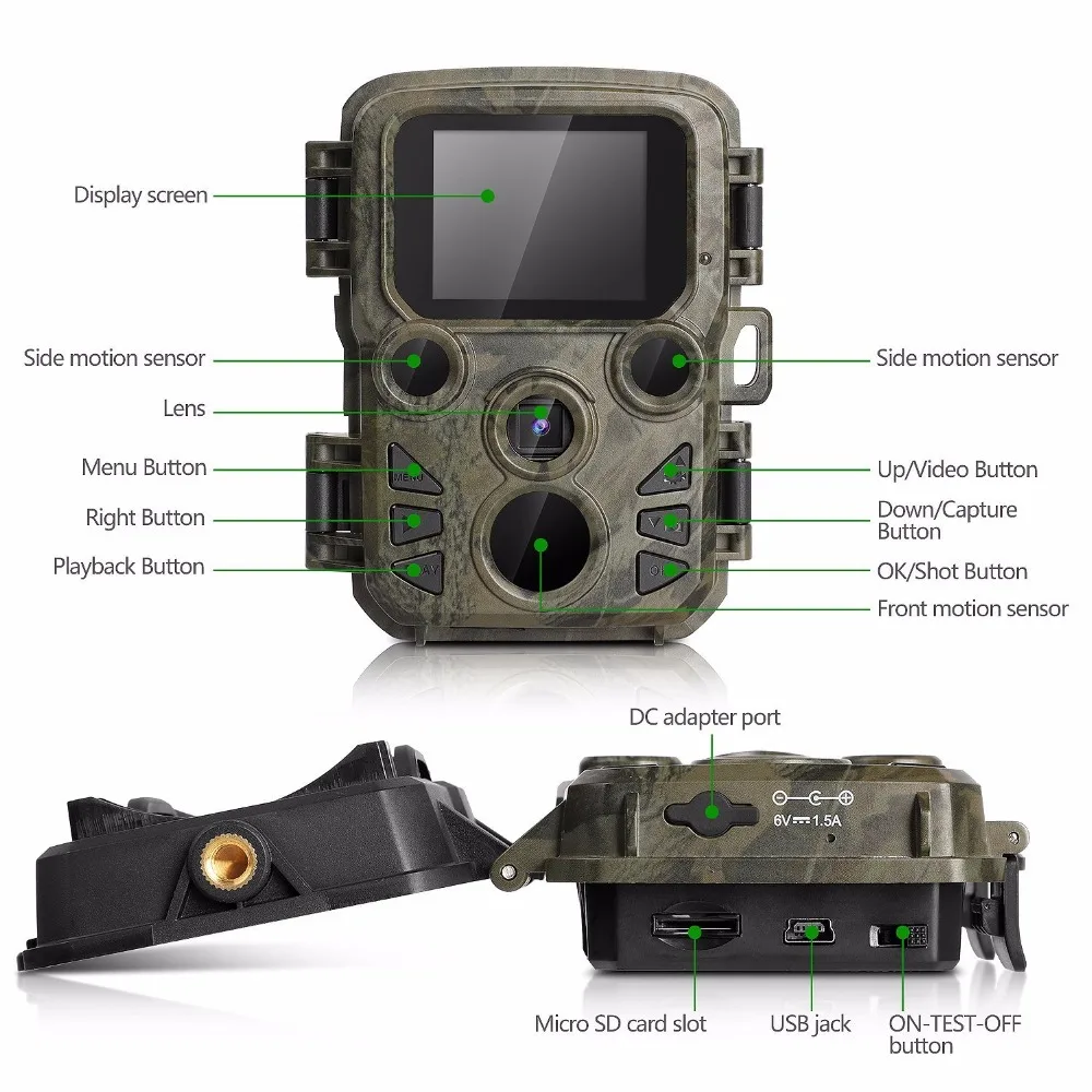 This trail and game camera comes with a highly sensitive PIR sensor. It can be triggered in a certain region of interested (ROI) by detecting any movement of objects or animals in an impressively fast speed of 0.45 second. It takes clear (up to 12MP) clear images and 1080P video clips with sound. Its 70° lens angle and 3 pictures shot each time guarantee you'll never miss any unforgettable moments. This camera is compact in size and light in weight, not just widely used for outdoor scouting games and wildlife observation, but also popular in home and office security.