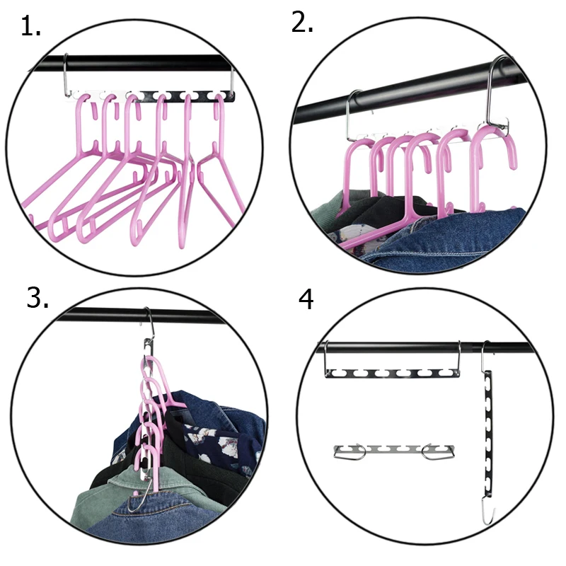 Простота в использовании-просто вставьте крючки в отверстия на конце вешалки и начните подвешивать одежду
