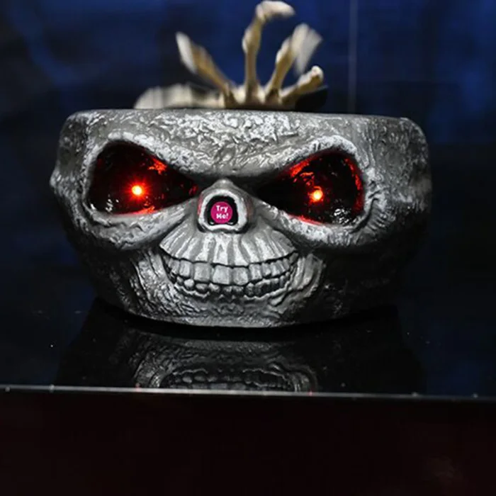 Высокий Хэллоуин конфеты чаша череп с анимированные руки Электрический реквизит украшения для вечерние домашние столы LG66