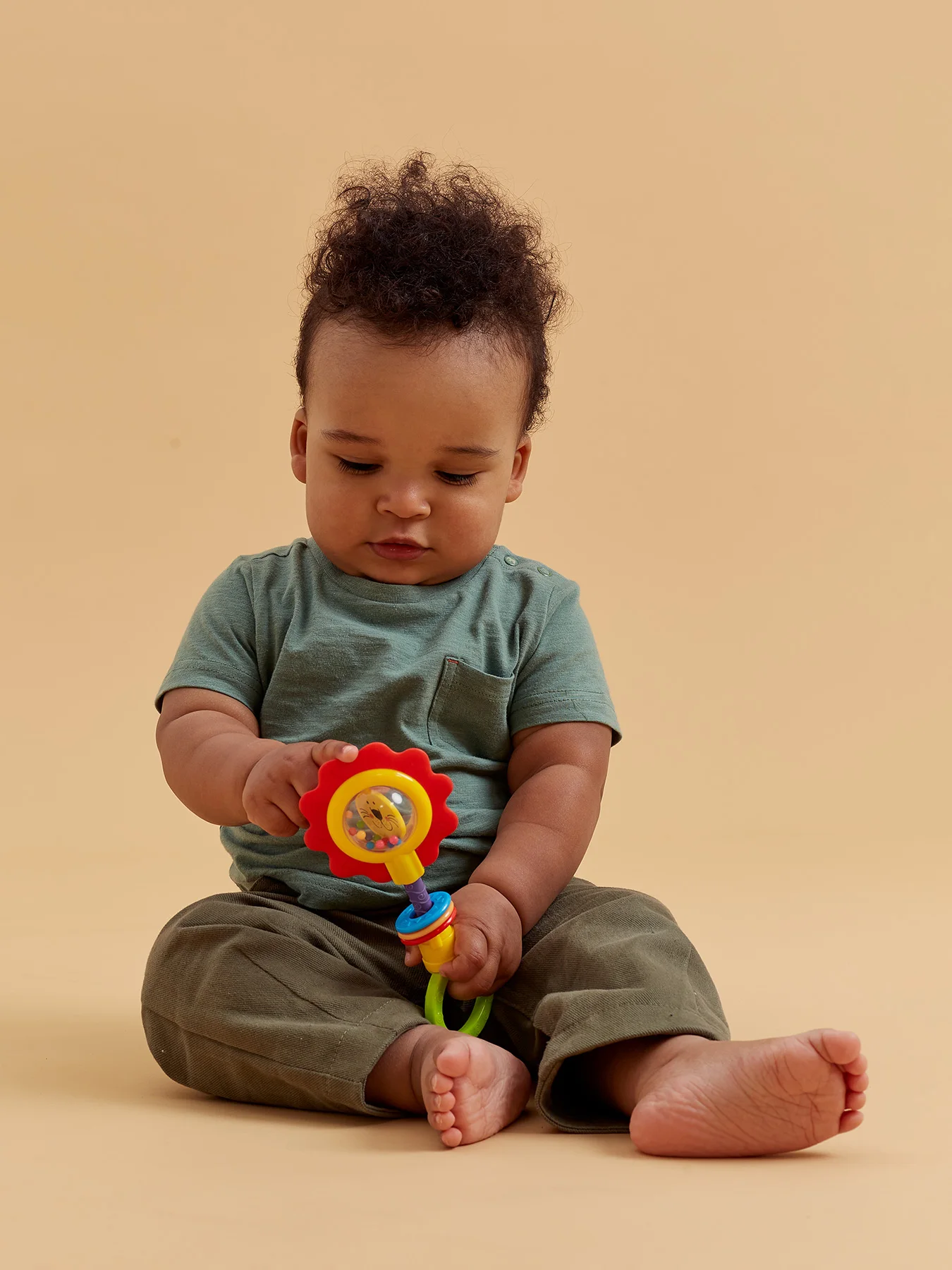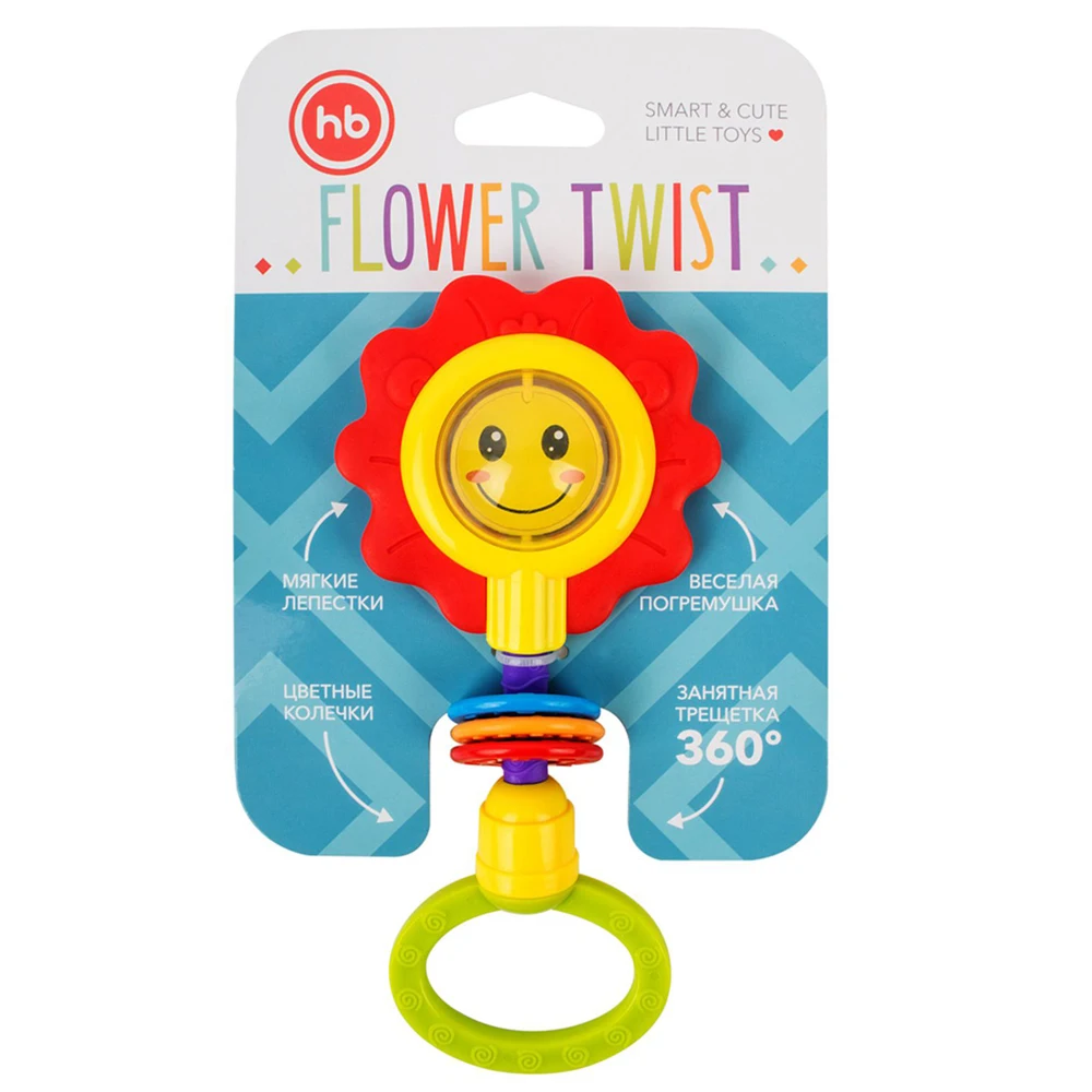 ОписаниеПогремушка FLOWER TWIST – это прекрасный подарок ребёнку с самого раннего возраста. Погремушка в виде милого цветочка с улыбающейся мордашкой не оставит равнодушным Вашего малыша. Цветочек представляет собой обрамлённую яркими рифлёными лепестками прозрачную серединку-шарик с изображением дружелюбного личика внутри. Весёлая мордашка привлечёт внимание малыша и вызовет положительные эмоции. Так и хочется улыбнуться цветочку в ответ! Внутри шарика перекатываются бусинки, которые создают шумовой эффект и привлекают внимание к игрушке. Яркие лепесточки сделаны из мягкого безопасного материала, малыш будет их покусывать в период прорезывания зубов: прорезыватель массирует дёсны и снимает болевые ощущения.ХарактеристикиВес нетто0.069СоставАБС-пластик, полипропилен, этиленвинилацетатВозраст3м+