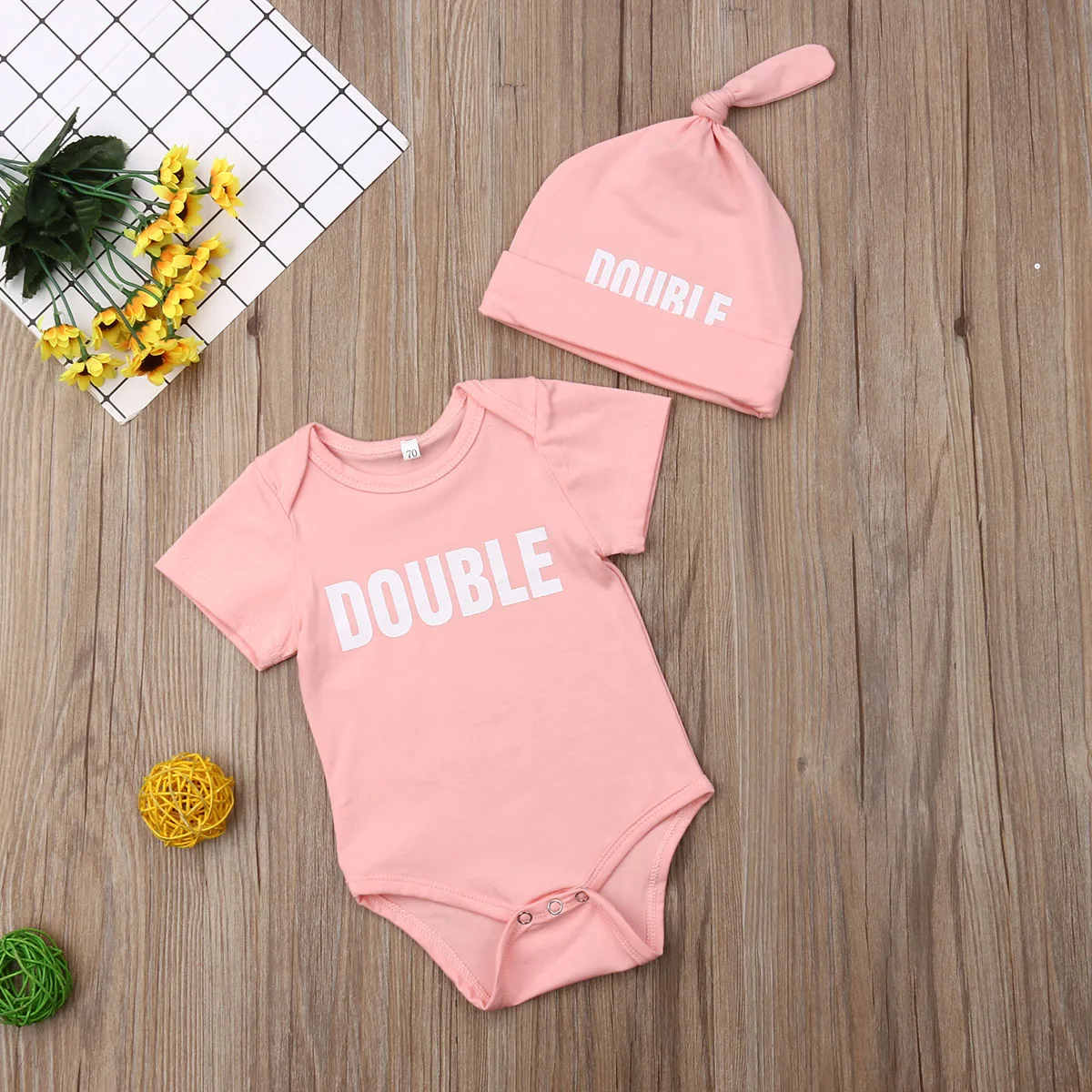 Милый комбинезон для новорожденных близнецов; Шапка; Комплект из 2 предметовНабор!
