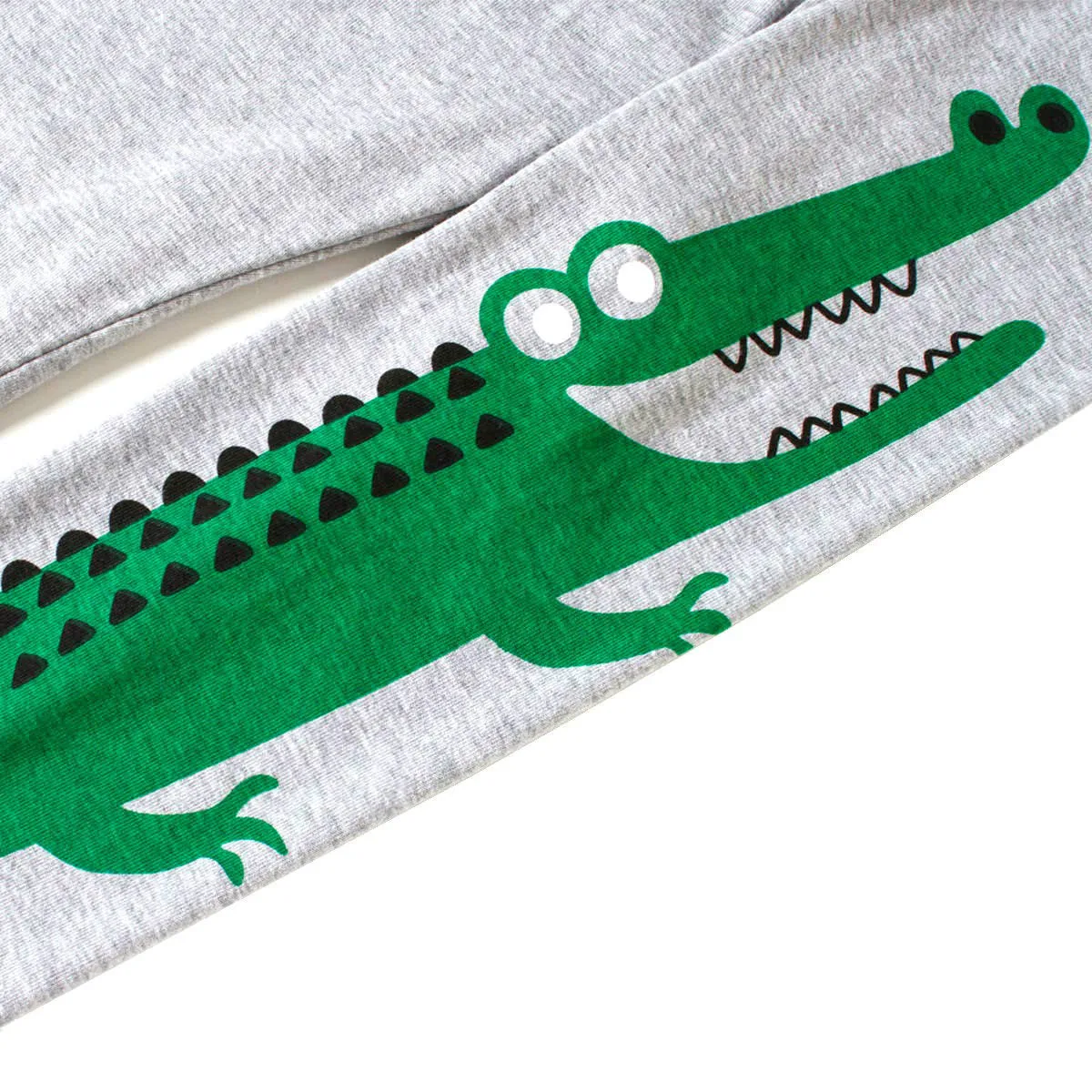 Этот Пижамный набор из 2 предметов с уникальным дизайном динозавра сверху и снизу с принтом крокодила.