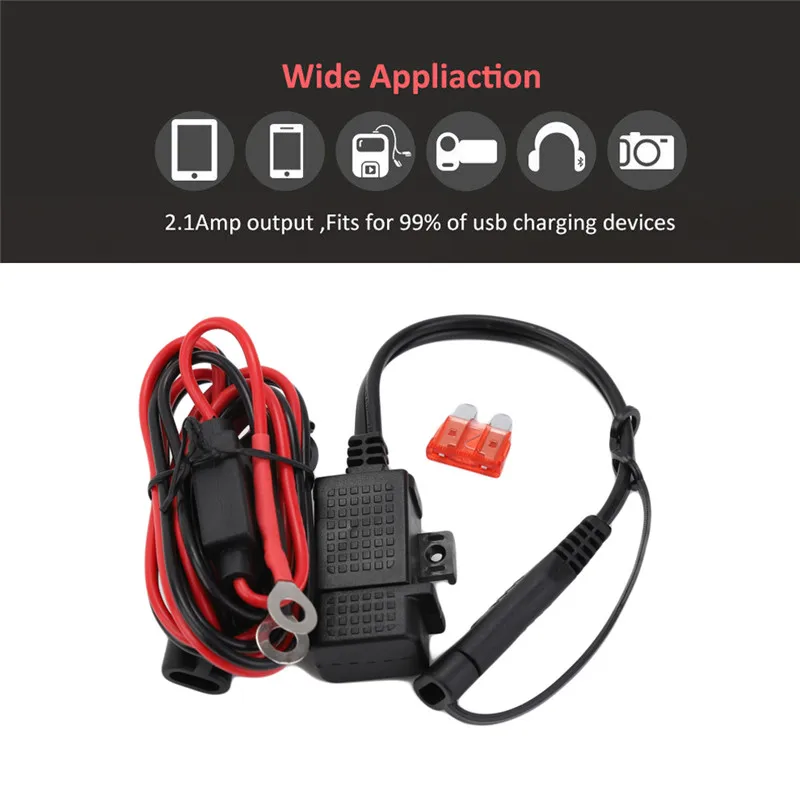 1. Двойное гнездо: оно может питаться непосредственно от существующей SAE Розетки мотоцикла или от аккумулятора путем подключения к удлинительной линии кольцевого терминала.